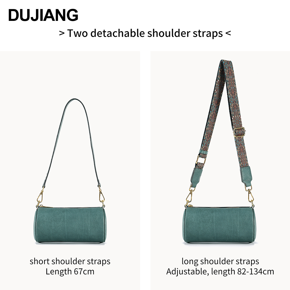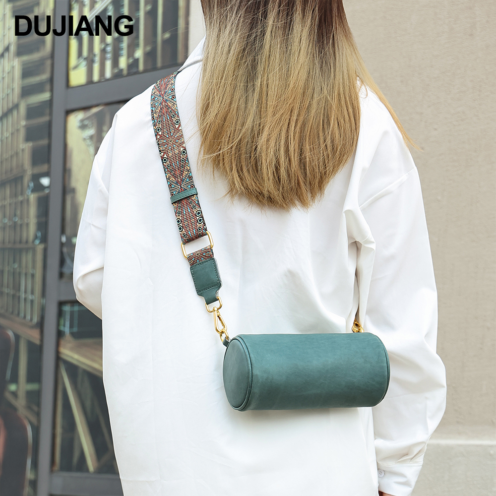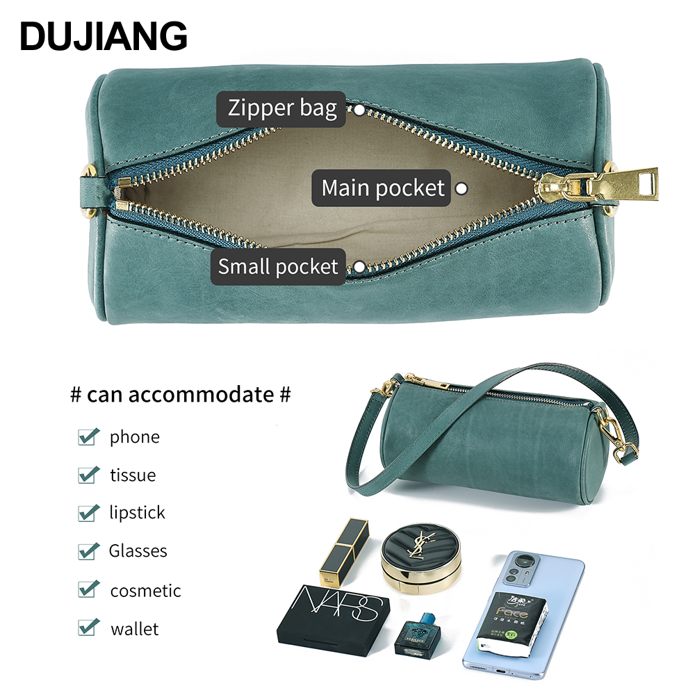 Fashion Small Single Cylindrical Shoulder Bag Genuine Cowhide Solid Zipper Messenger Bag Guitar Strap Crossbody Bags for Women