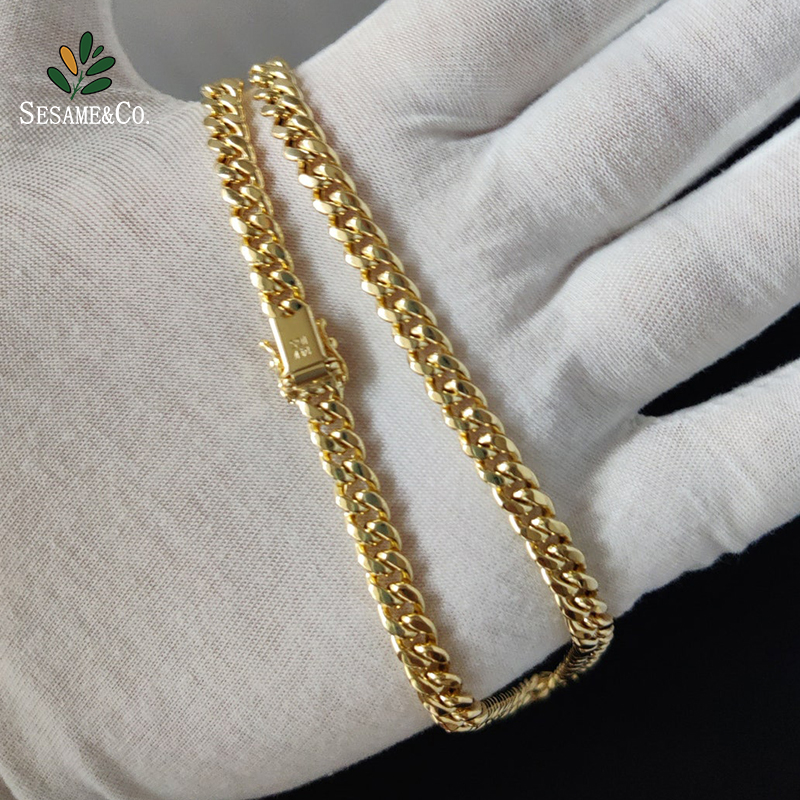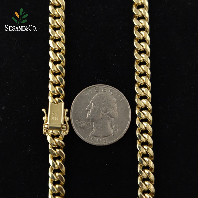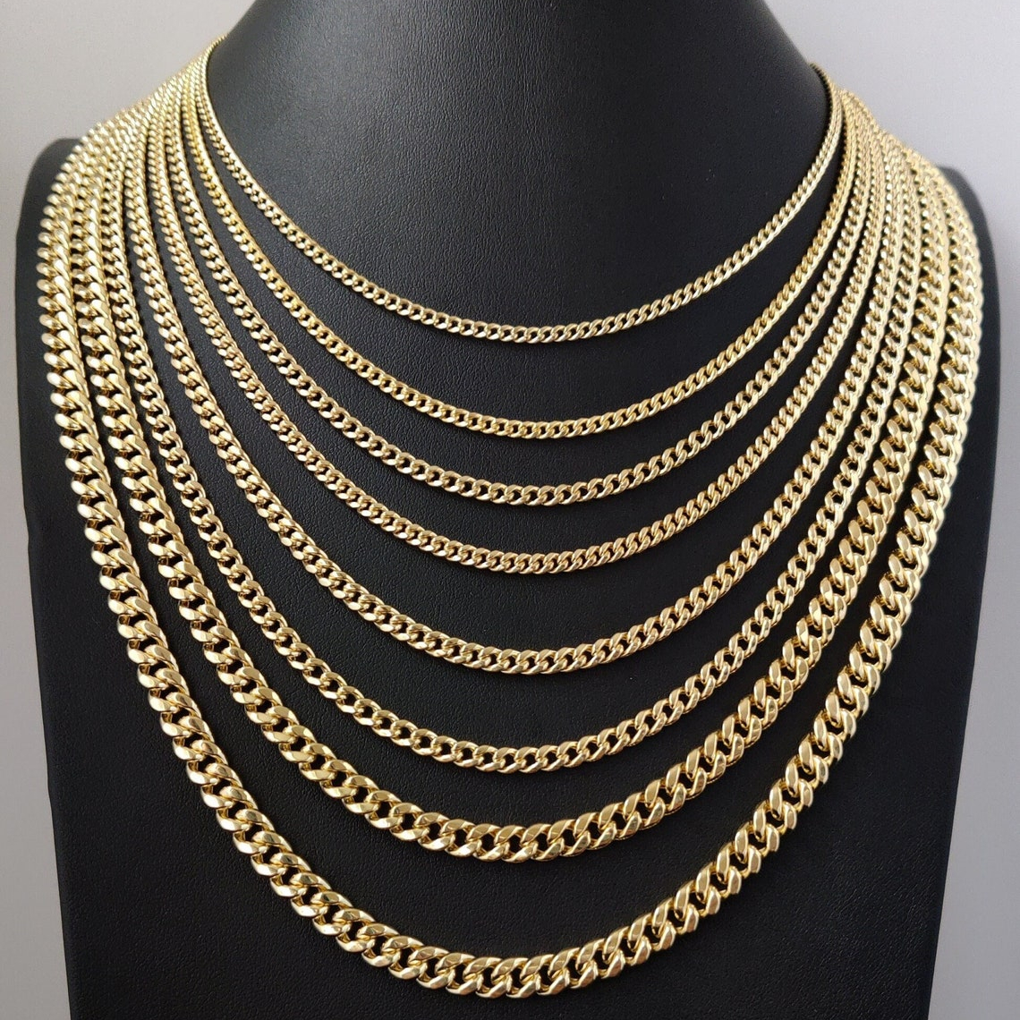 14k Real Gold Miami Cuban Link Chain Necklace 3mm - 6.7mm Inches Real 14K Yellow Gold Man Ladies Gold Chain