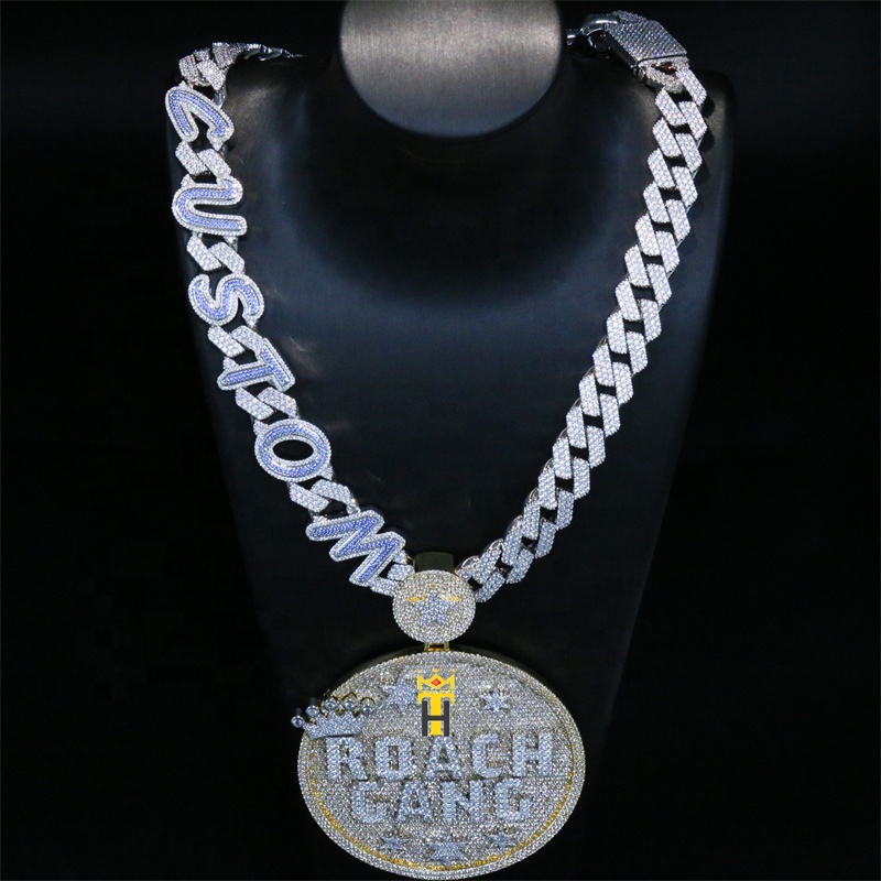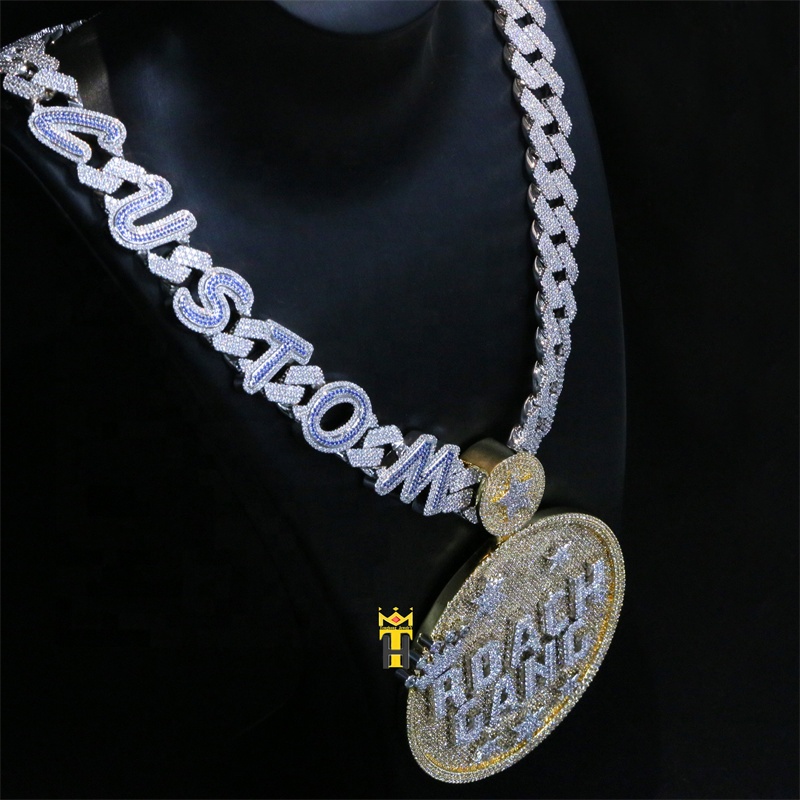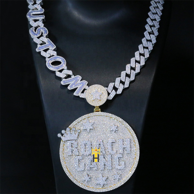 Custom round gold iced out pendants hip hop name letter pendant custom pendant necklace