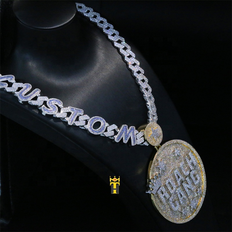 Customized Hip Hop Jewelry moissanite cuban link chain white moissanite necklace 925 sterling silver 10K 14K 18K Gold Jewelry