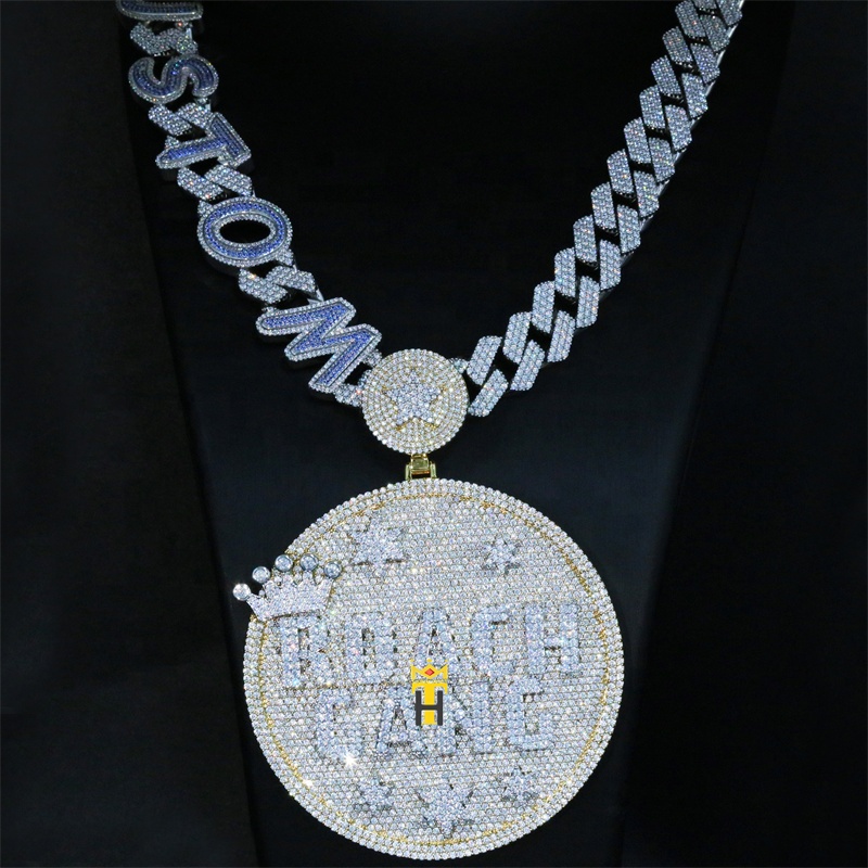 Fashion style 925 sterling silver moissanite pendant hip hop men pendant necklaces
