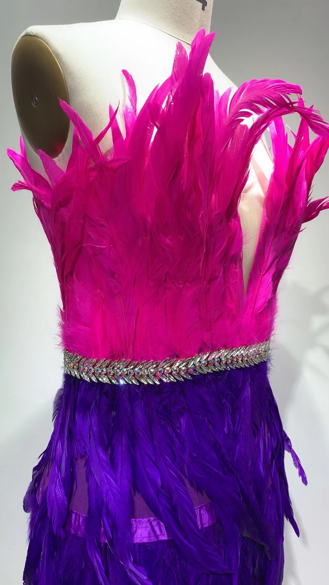 ED2252 Kimshein Luxury Dresses Women Elegant Clothing Mesh Fabric Feathers Show Slim With Crystal Belt Dress Evening