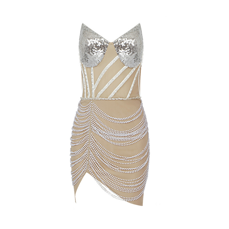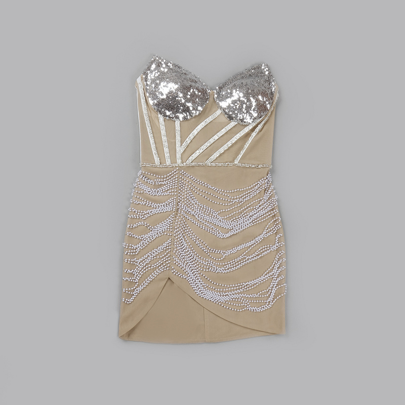 A6910 Sleeveless Mini Women Party Dresses Rhinestone and Sequin Mesh Fashion Dresses