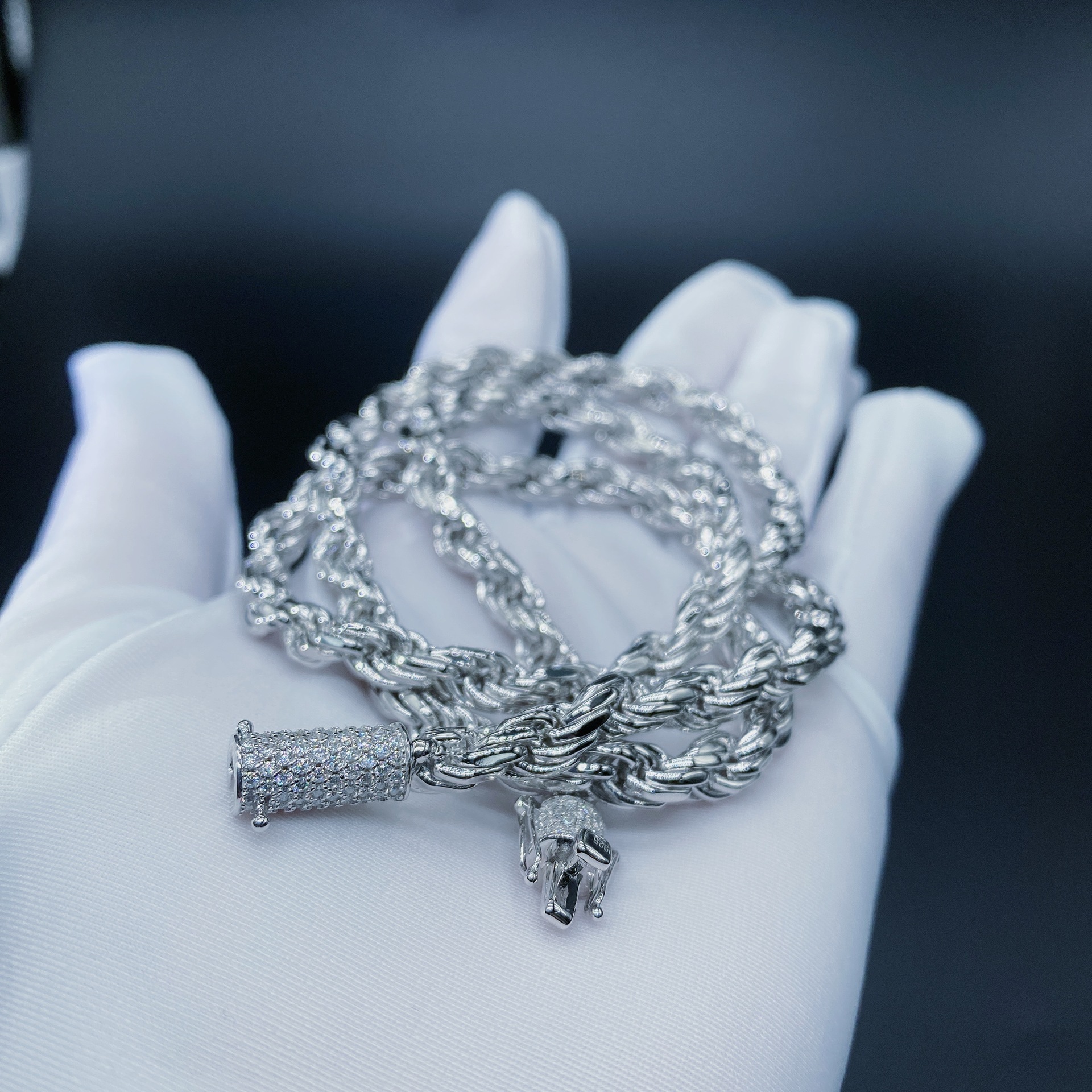 Fine jewelry thick 6MM real gold plated 925 Sterling silver miami rope chain necklace with moissanite buckle