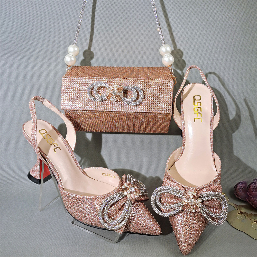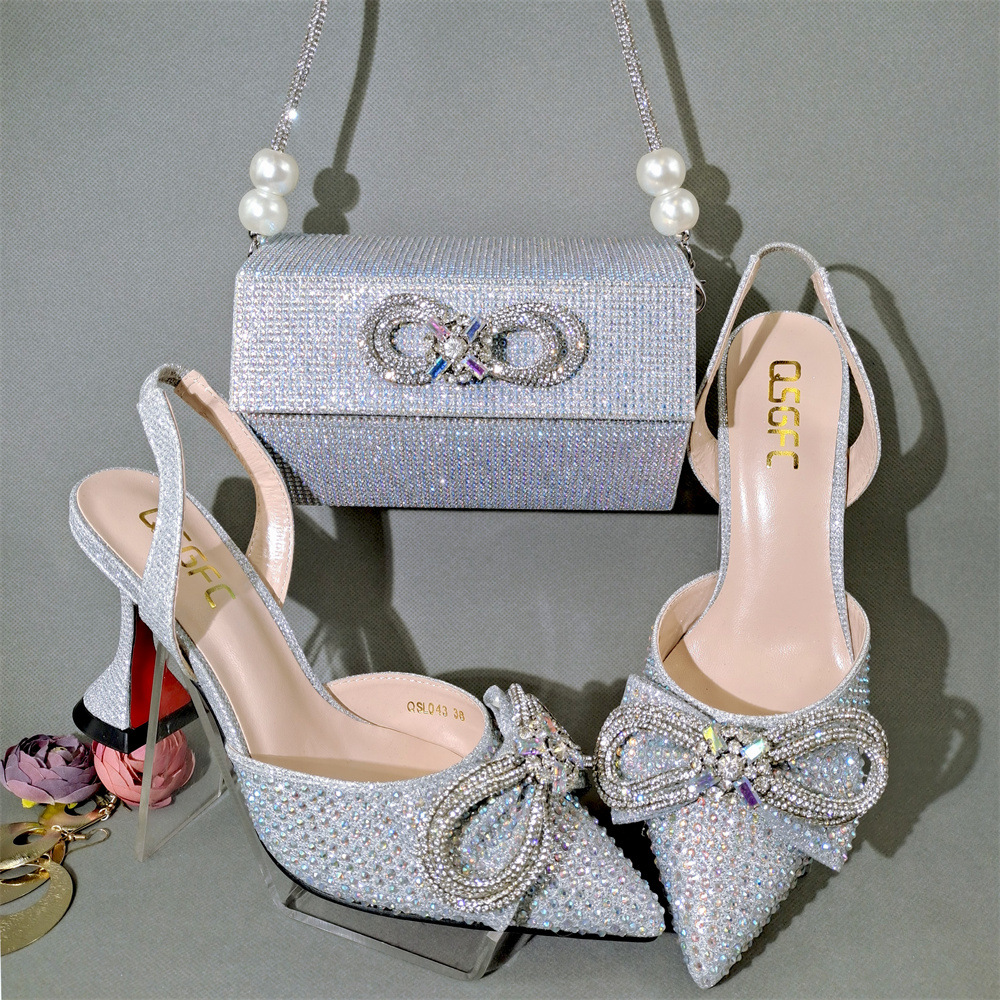 African Evening handbag and heels shoe matching sets elegant big bag and shoes set handbag with sandal