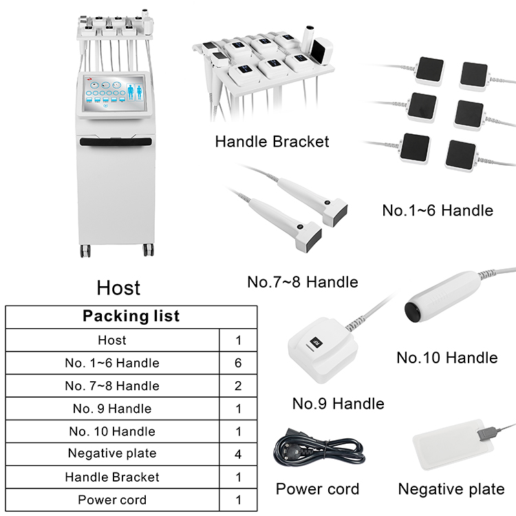 1. Non-invasive and non-ablative. 2. The discomfort of this therapy is minimal, which can be compared with hot stone massage. 3. No consumables, non-invasive and painless, no anesthesia, no side effects, no recovery period, you can do whatever you want without affecting your normal work and life. 4. It is easy to use without an operator, and it is simple and safe. 5. Simultaneous treatment of multiple areas, 6 (flat fixed) hands-free handles that can cover 300cm² at the same time on the abdomen and both sides. 6. Special hand-held handle, suitable for smaller and more sensitive parts of the body, such as side breasts, doublechin, face. 7. Maintain the subcutaneous temperature of the treated area evenly throughout the procedure. 8. Removes fat from the treated area while rejuvenating and firming the skin. 9. The system features an intuitive interface and a range of handles to customize treatment, whether for multiple hands-free areas or a single handle area for treatment. 10. Intelligent temperature control system, the radio frequency energy delivery is dynamically adjusted based on the continuous monitoring of the skin temperature, and the intelligent temperature control is within the set comfortable temperature, which can safely and effectively avoid tissue damage. 11. Real-time temperature detection system, real-time display of skin temperature during treatment, more intimate and more assured.