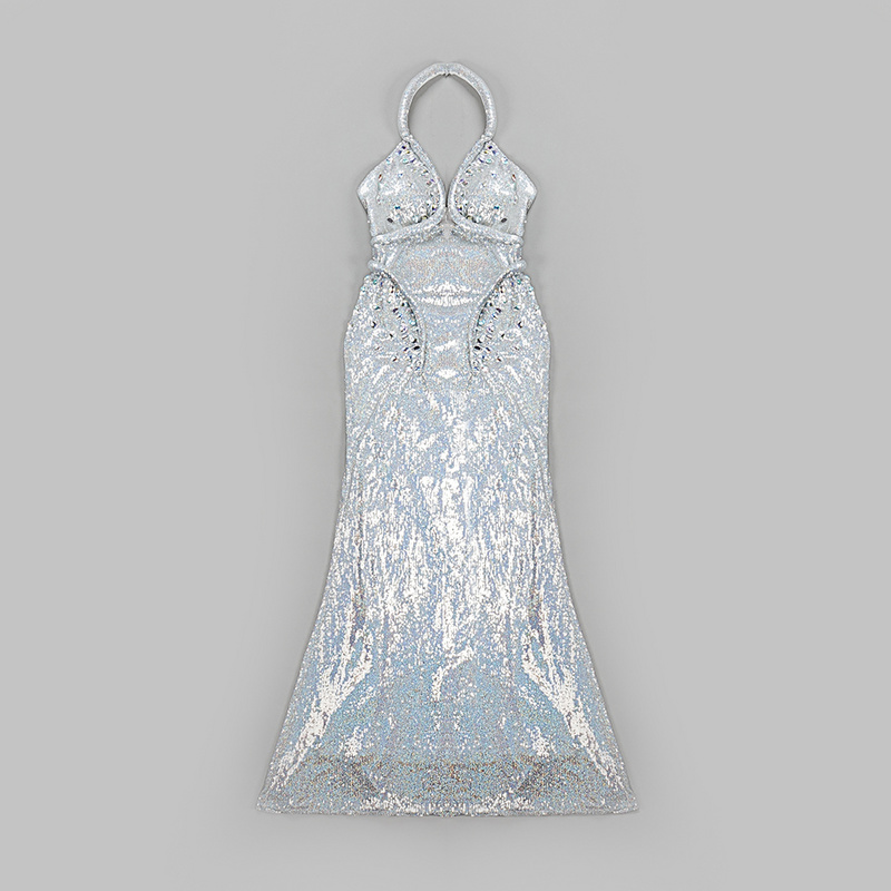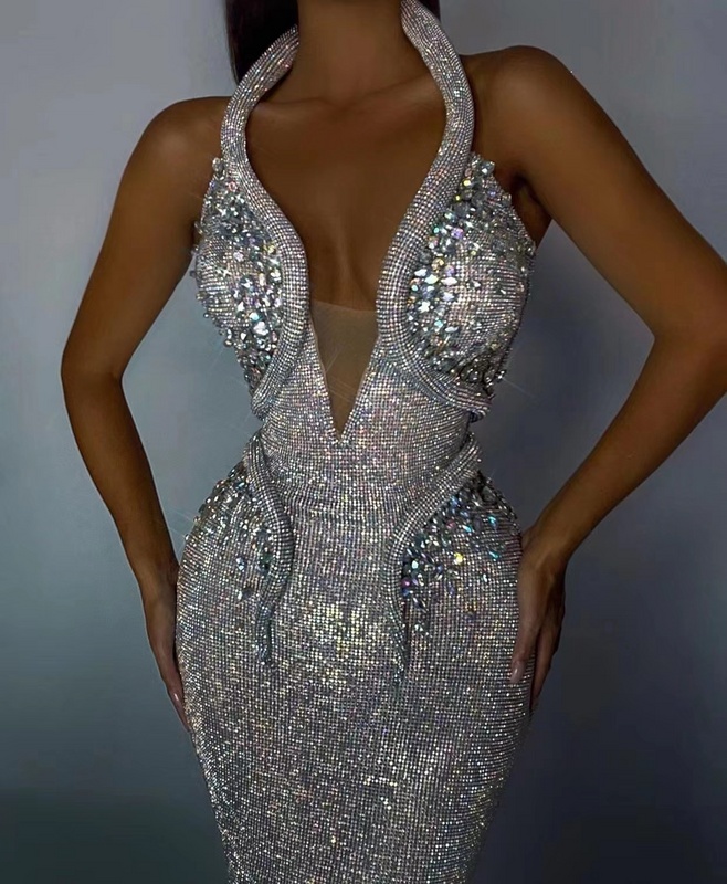 undefined A6957 Glitter Long Slim Dinner Dress Women Lady Elegant Halter Luxury Rhinestone Party Evening Dress
