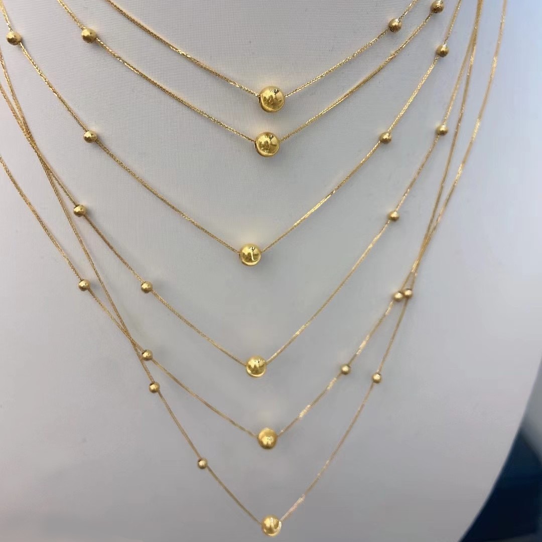 Pure 18K Real Gold 3D Hard Cat Eye Chopin Necklace Au750 Women Jewelry Chain Custom /