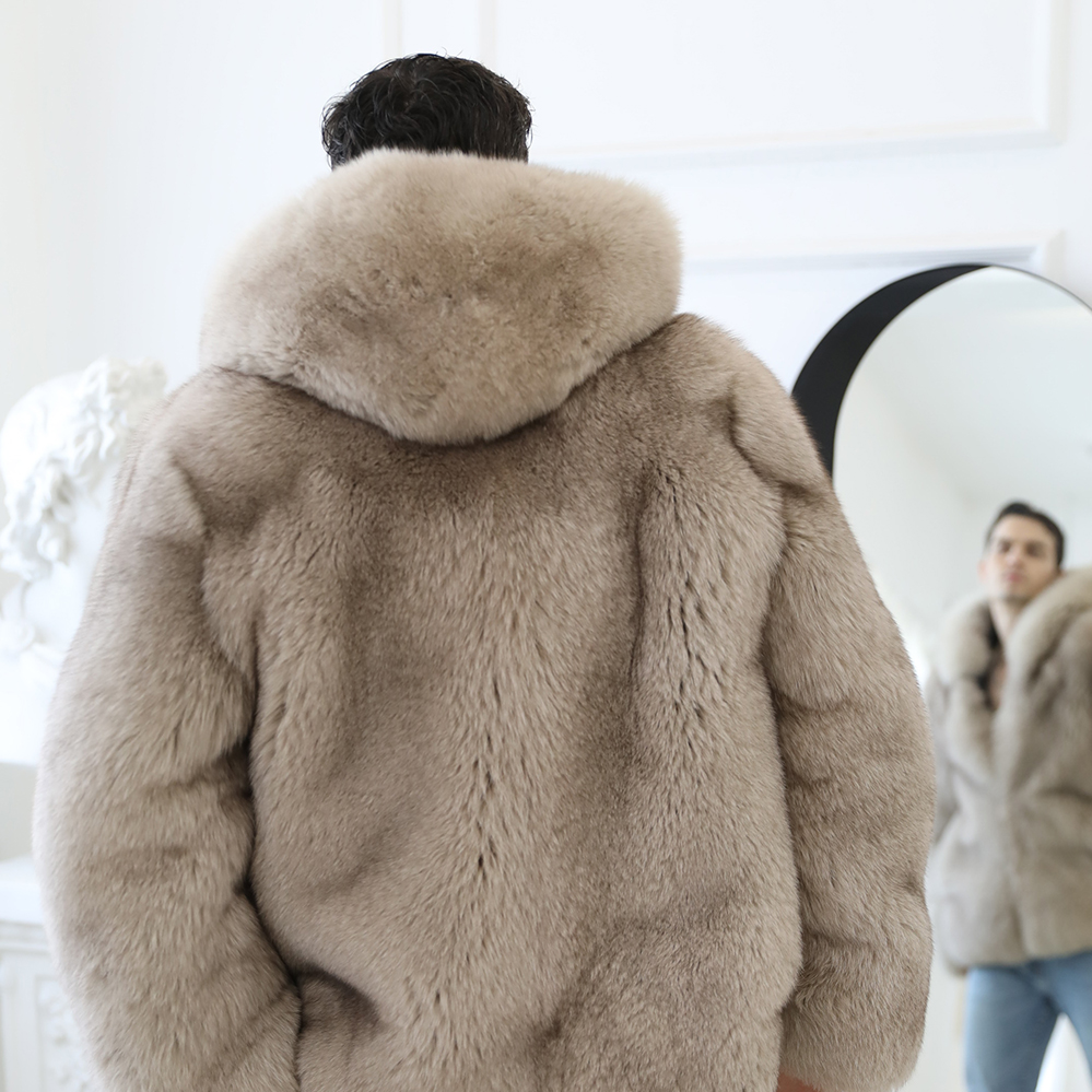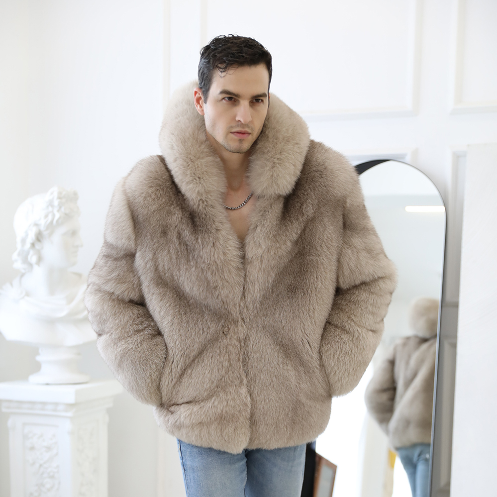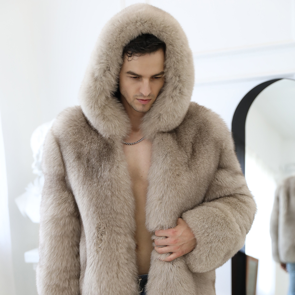 Latest Design Men warm Charming fox fur outwear with hat men autumn Winter comfortable fox fur coat