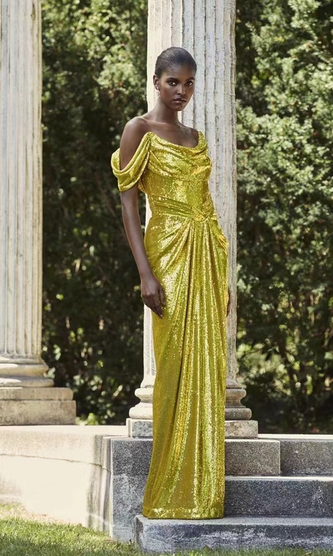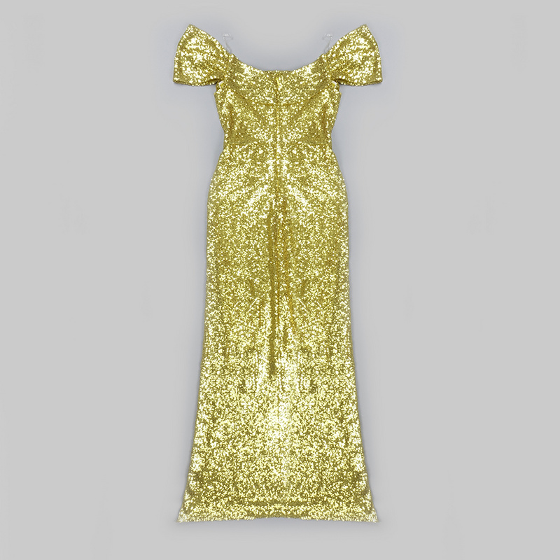 H1140 Kimshein Fashion New Designers Women Ladies Bodycon Sequined Sexy Off Shoulder Slit Full-length Evening Dresses