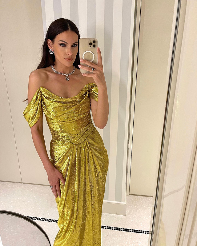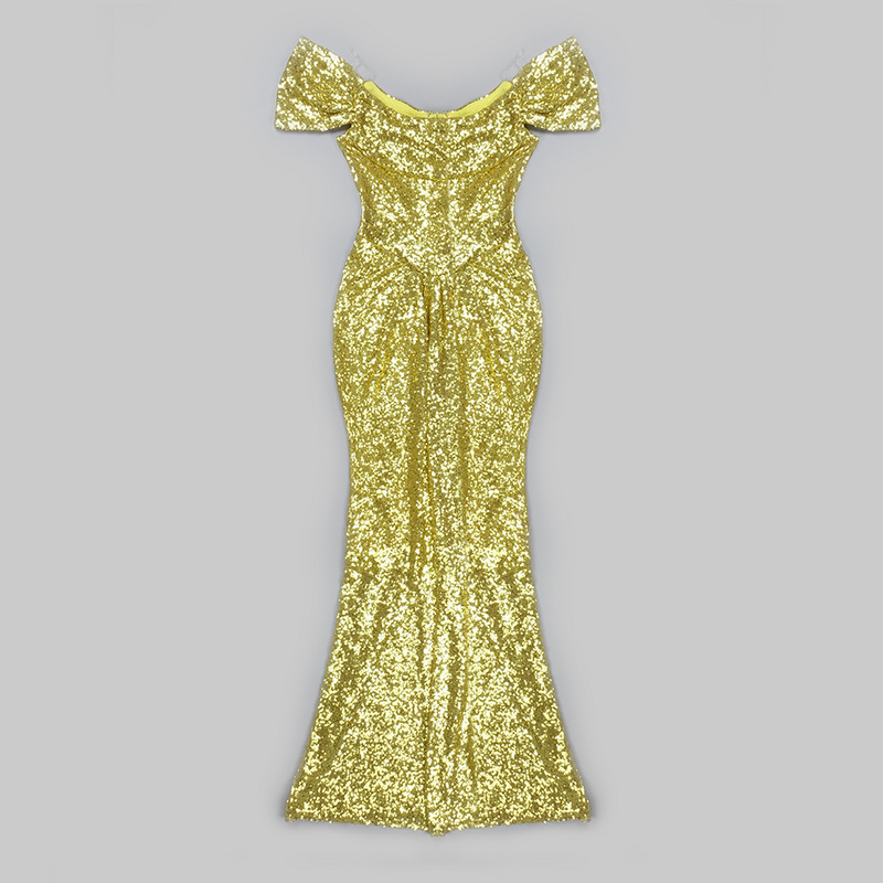 undefined A7037 Latest Designs Solid Color Women Long Gown Sequined Sexy Off-shoulder Fashion Ladies Party Dress