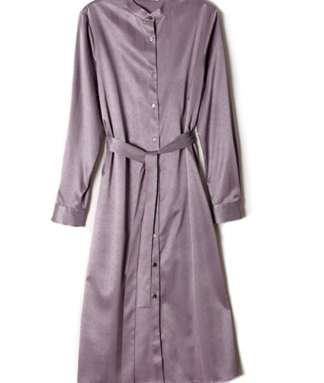 Product Name Herringbone wave satin silk blouse dress with button sashes female real silk French collar elegant women shirt dress