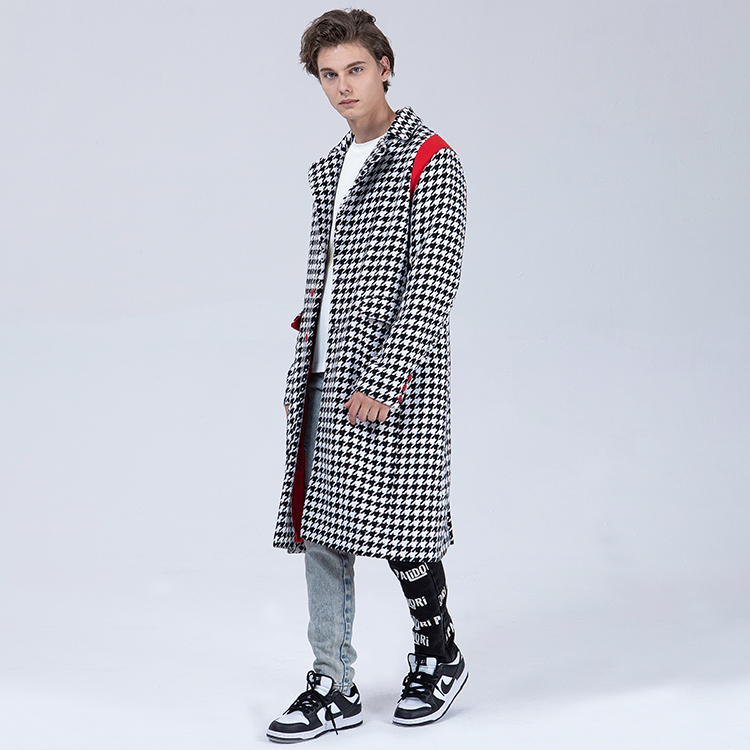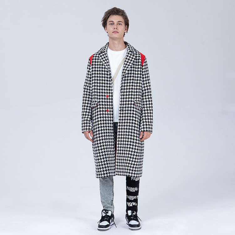 Best seller custom plus size mens winter Houndstooth long broadcloth trench coat for men