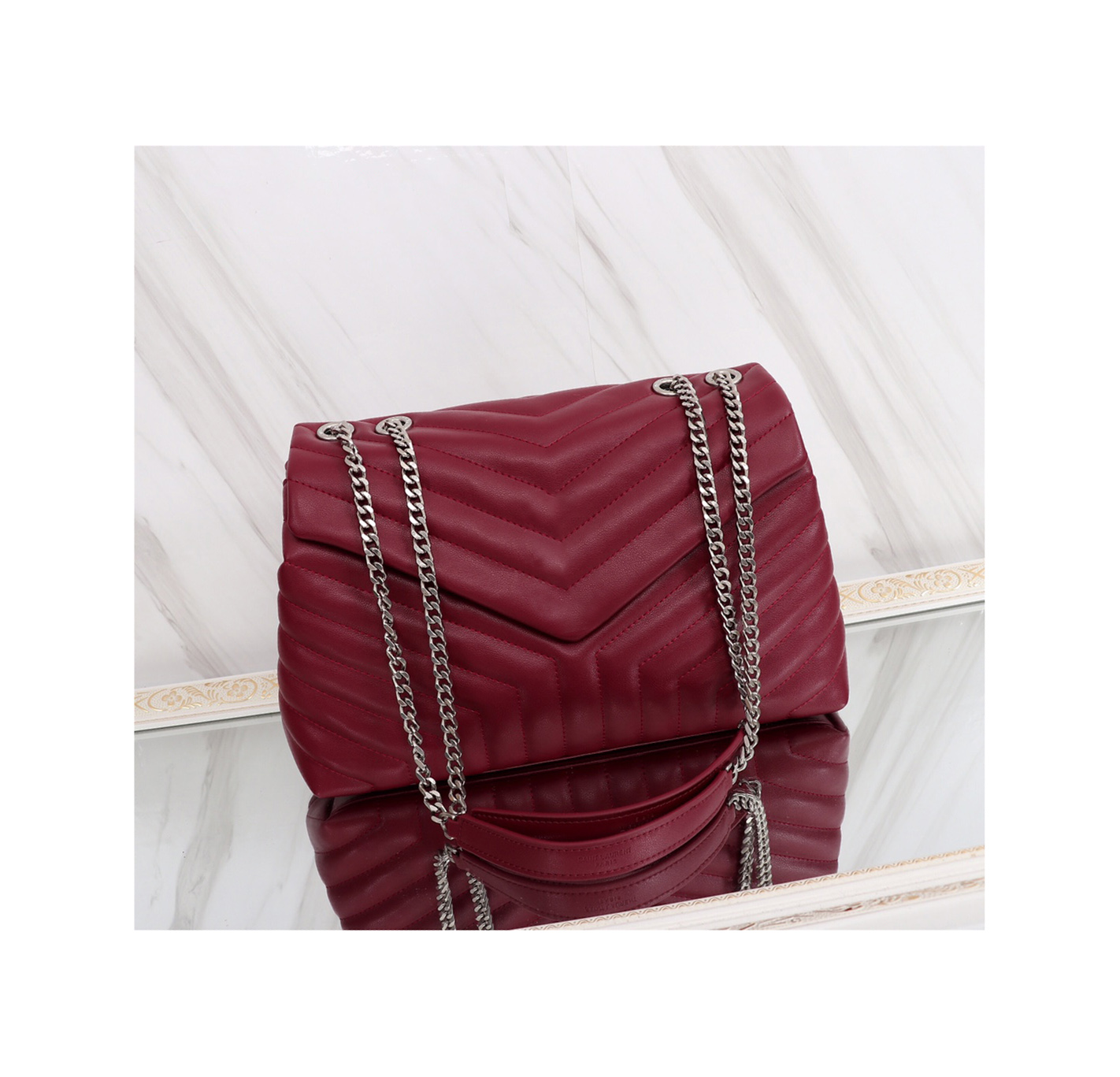 High End Quality Bag Manufacturer Maroon Vegan Leather Printed Tote Bag Shoulder Handbag with Chain