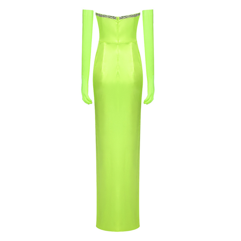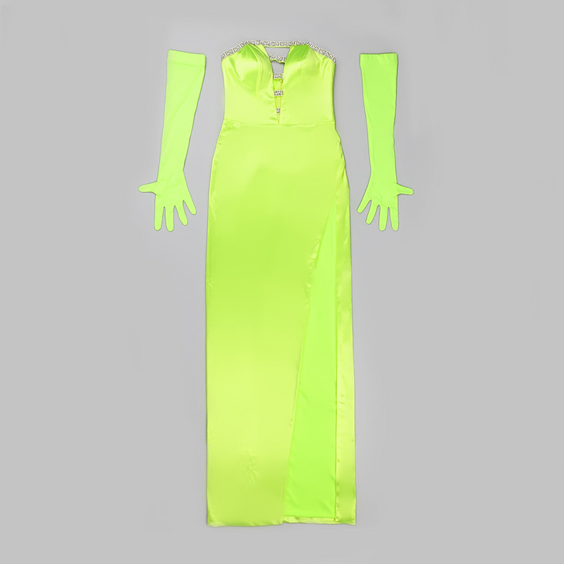 A7143 Fast Shipping Green Women Party Dress Satin Sexy High Slit Sleeveless Ladies Maxi Evening Dress