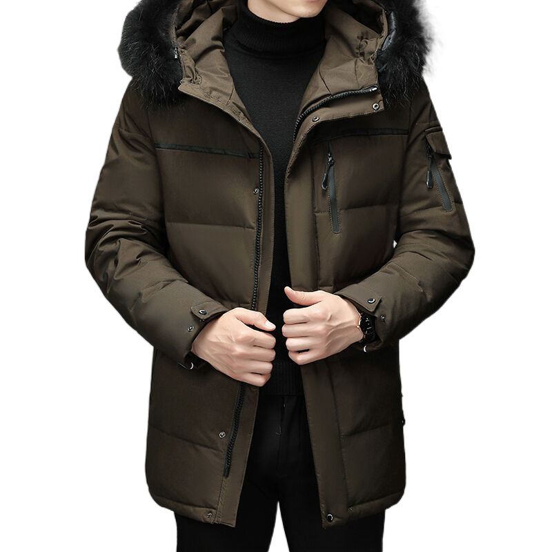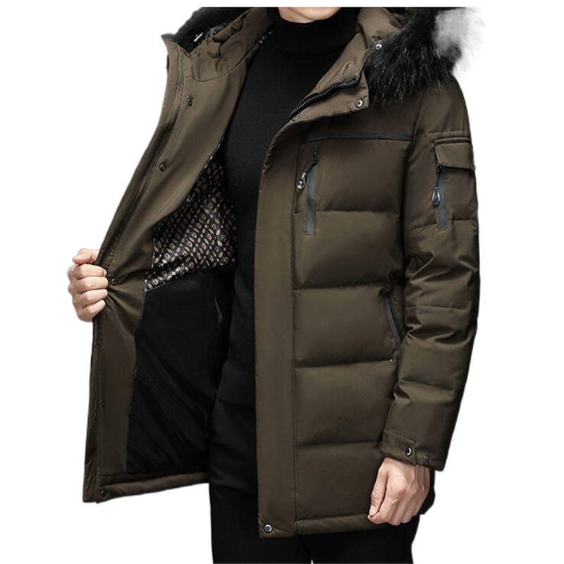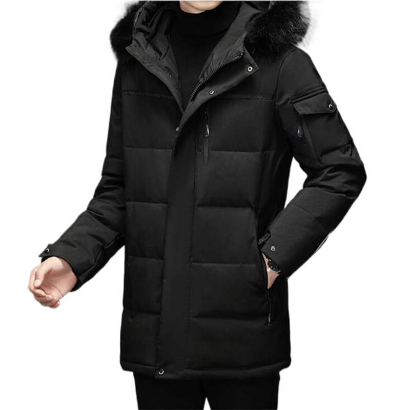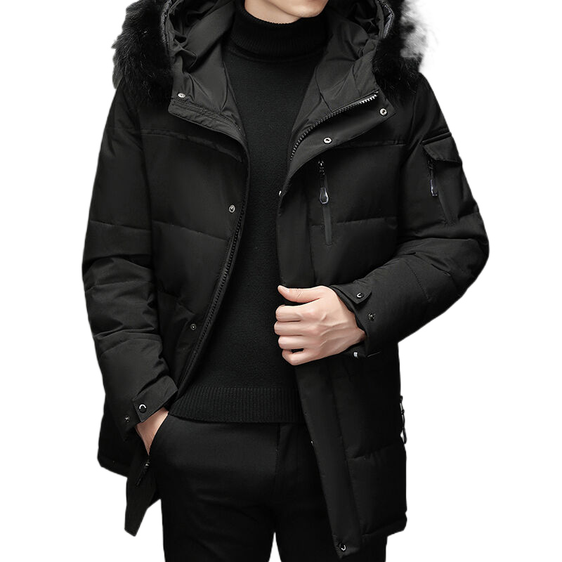 Custom Wholesale Down Outdoor Windproof Puffer Long Jacket Hooded Fur Trim Mens Winter Overcoat