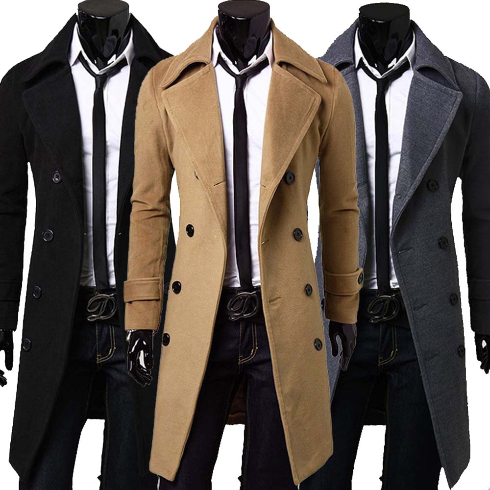 Latest Design Woolen Coat Slim Fit Single Long Breasted Winter Plus Size Men's Coat