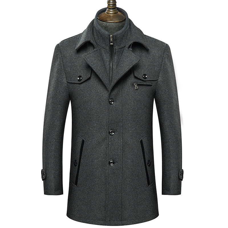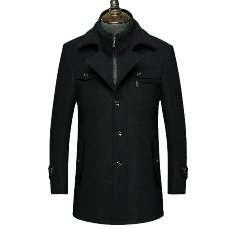 Latest Design Woolen Coat Slim Fit Single Long Breasted Winter Plus Size Men's Coat