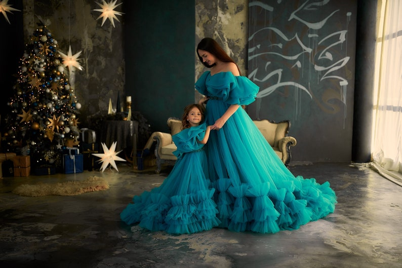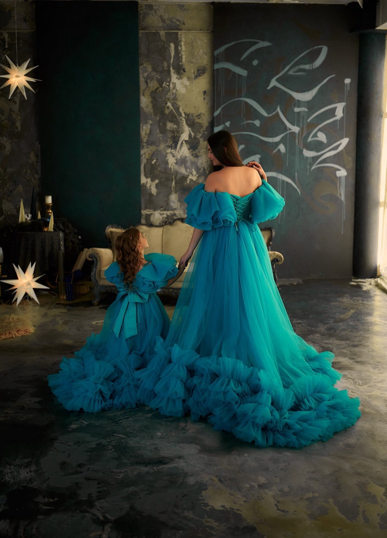 New Arrival Fluffy Tulle Dresses Ruffles With Train Plus Size For Photo Shoot Mom and Daughter Tulle Evening Dress