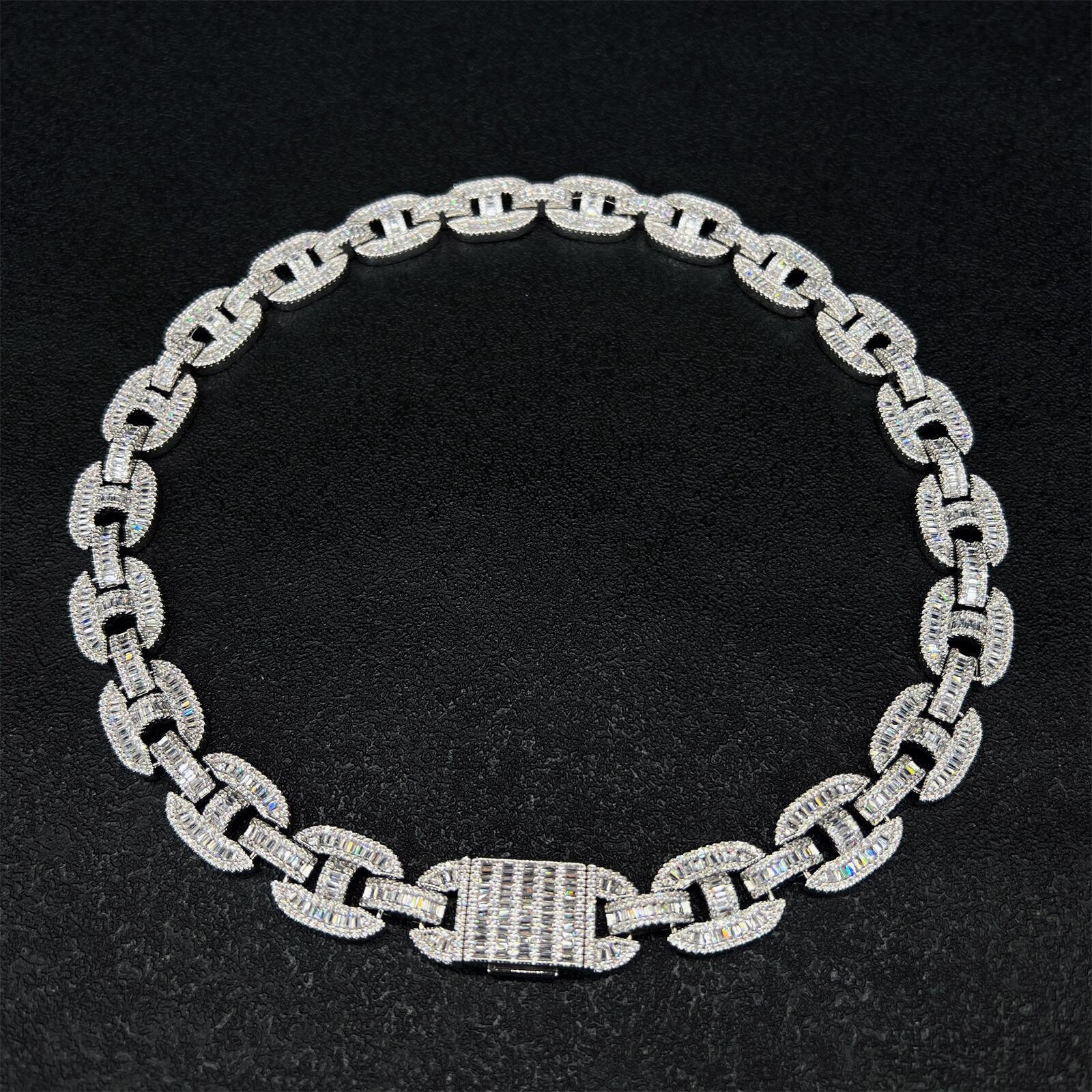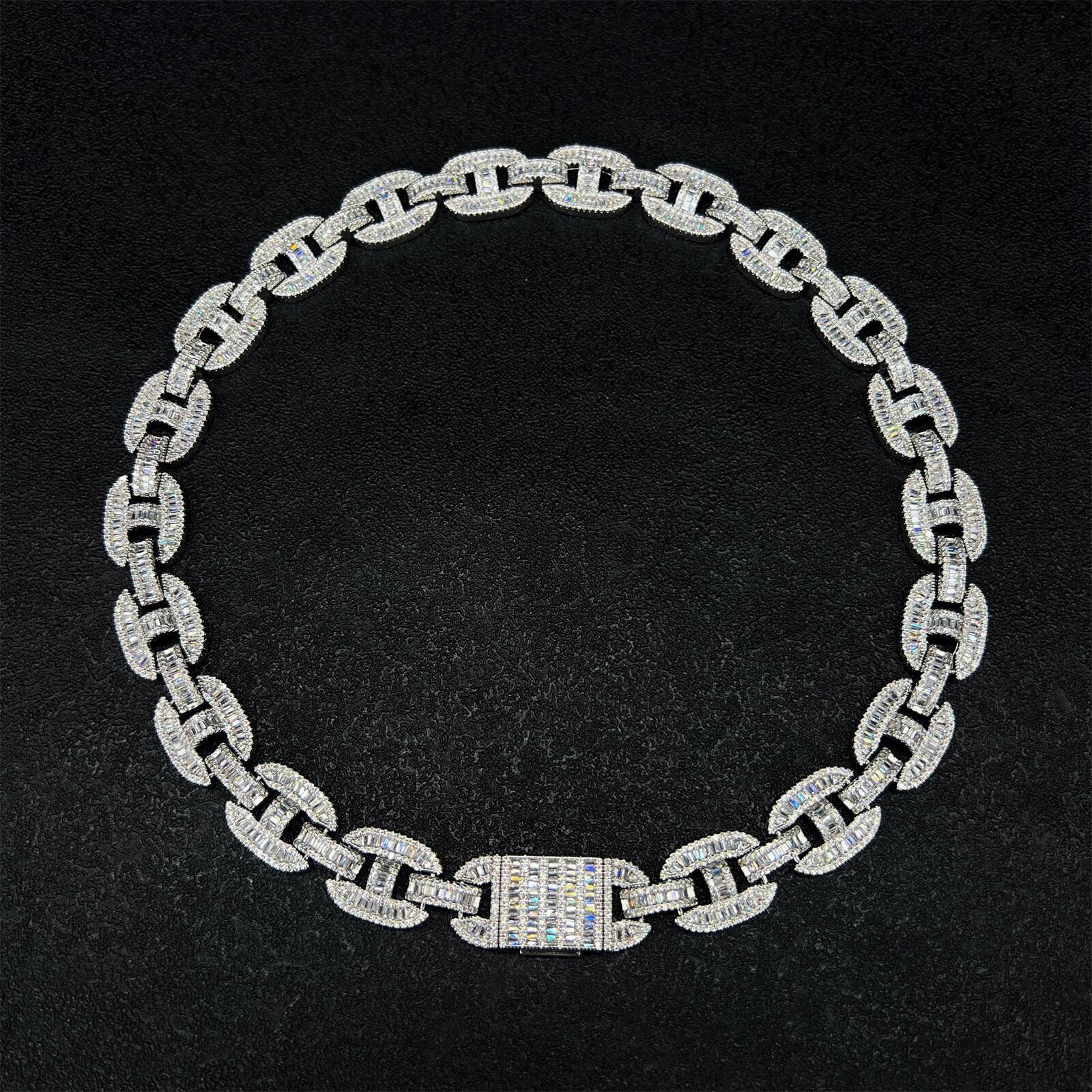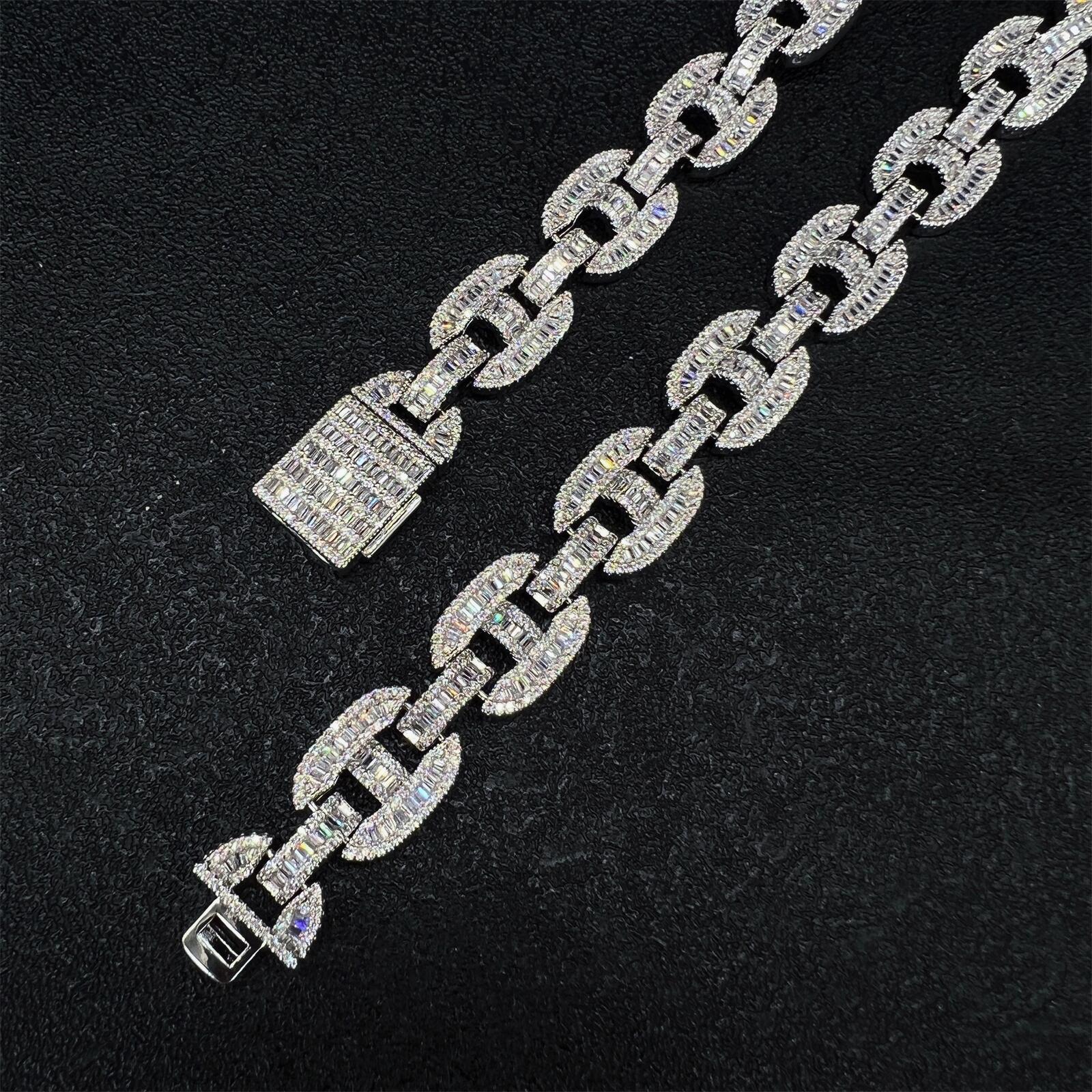 Hot Selling Hip Hop Jewelry Mens 10mm 925 Sterling Silver VVS Moissanite Diamond Iced Out Square Tennis Chain Necklace