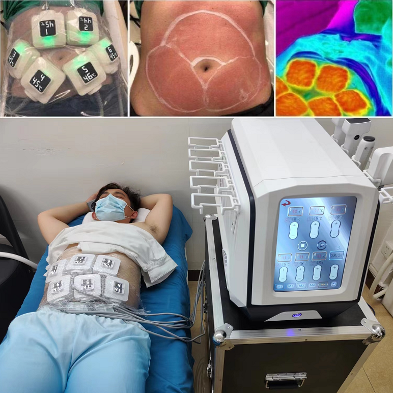 Advantage: 1.Non-invasive and non-ablative. 2.The discomfort of this therapy is minimal, which can be compared with hot stone massage.3.No consumables, non-invasive and painless, no anesthesia, no side effects, no recovery period, you can do whatever you want without affecting your normal work and life. 4. It is easy to use without an operator, and it is simple and safe. 5.Simultaneous treatment of multiple areas, 6 (flat fixed) hands-free handles that can cover 300cm² at the same time on the abdomen and both sides. 6.Special hand-held handle, suitable for smaller and more sensitive parts of the body, such as side breasts, double chin, face. 7.Maintain the subcutaneous temperature of the treated area evenly throughout the procedure. 8.Removes fat from the treated area while rejuvenating and firming the skin. 9.The system features an intuitive interface and a range of handles to customize treatment, whether for multiple hands-free areas or a single handle area for treatment. 10.Intelligent temperature control system, the radio frequency energy delivery is dynamically adjusted based on the continuous monitoring of the skin temperature, and the intelligent temperature control is within the set comfortable temperature, which can safely and effectively avoid tissue damage. 11.Real-time temperature detection system, real-time display of skin temperature during treatment, more intimate and more assured.