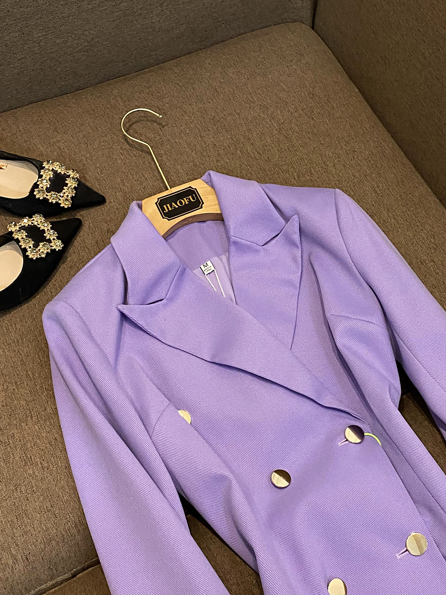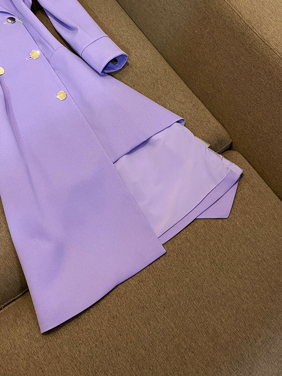 Fall Winter Delicacy Cloth Irregular Hem Bracelet Sleeve Double-breasted High Waisted Women Blazer Dress