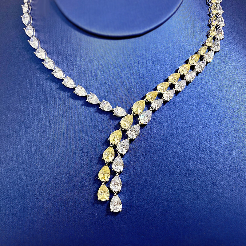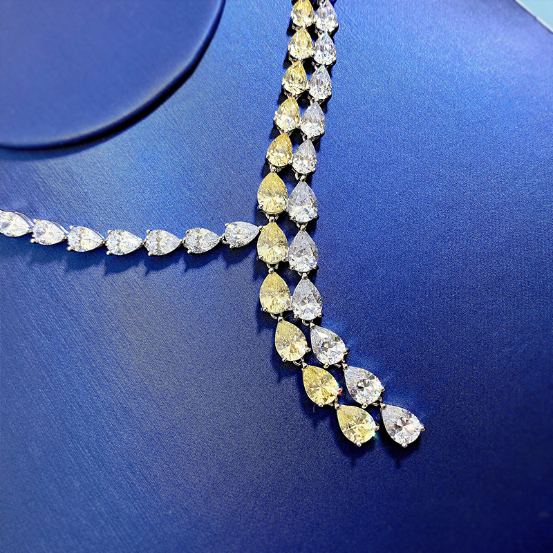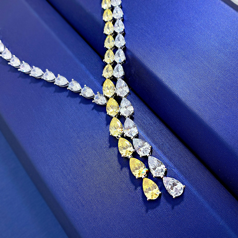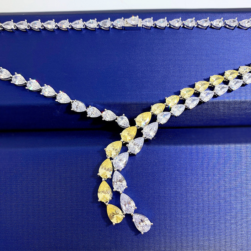 S925 Silver Euramerican ins Water Drop Necklace Luxurious Setting Design Premium Necklace 5a Zirconium Chain 45cm