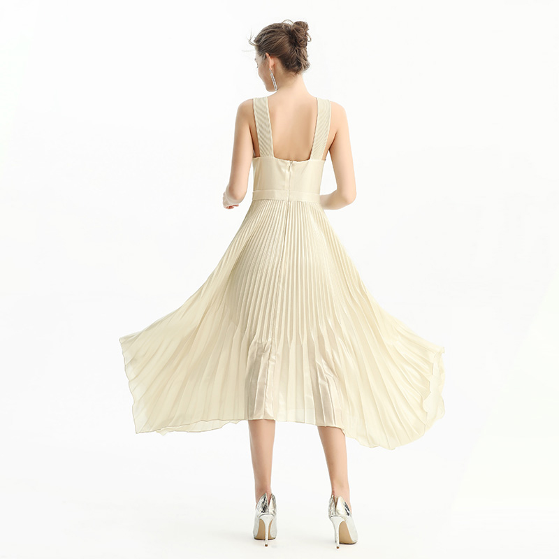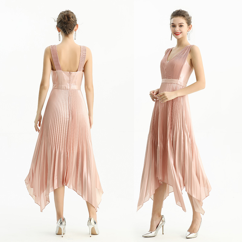 Solid Color,Polyester Shiny Coating Chiffon, Front Deep V Neck/Straps Design/Back Crop Out Sexy And Fashion,Waist Band For Slim Waist, Waistband/Side Pannel/Without Pleat Expelling Monotonous,Pleat On Front Bodice,Sunray Pleat Ball Gown