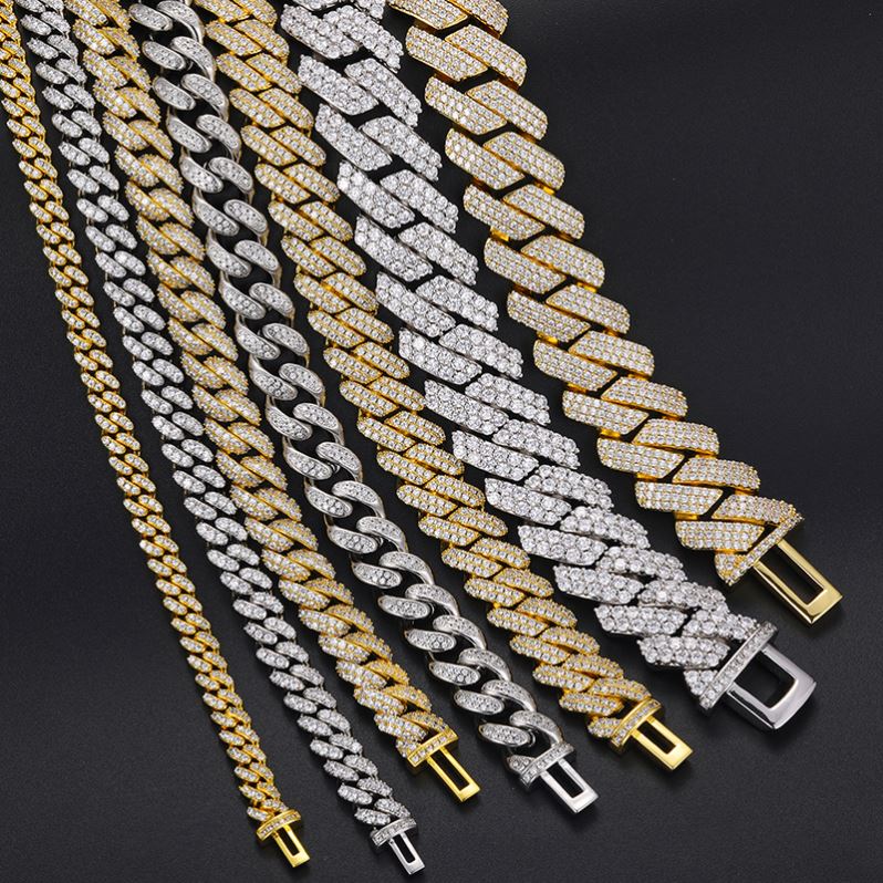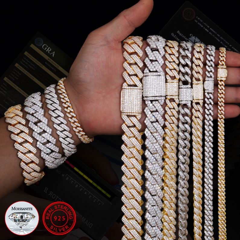Fine Jewelry Hip Hop Gold Plated 925 Sterling Silver VVS Moissanite Diamond Iced Out Miami Cuban Link Chain Necklace For Men
