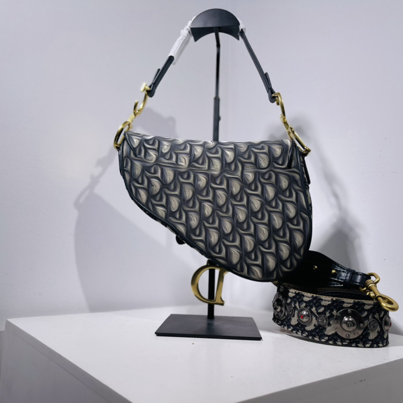Small Miss Caro Pouch with Chain Blue Dior Oblique Jacquard