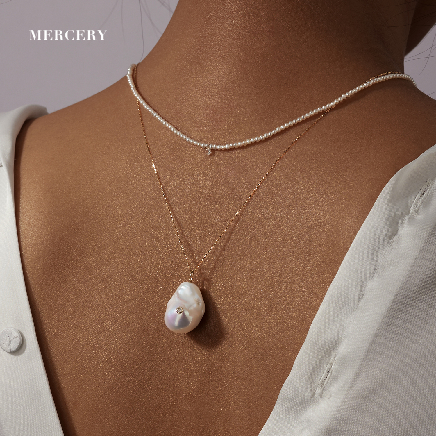 Mercery Custom Pearl Necklace Fashion Jewelry Pendants Charms Gemstone Bead Necklace 14K Solid Gold Necklace For Women