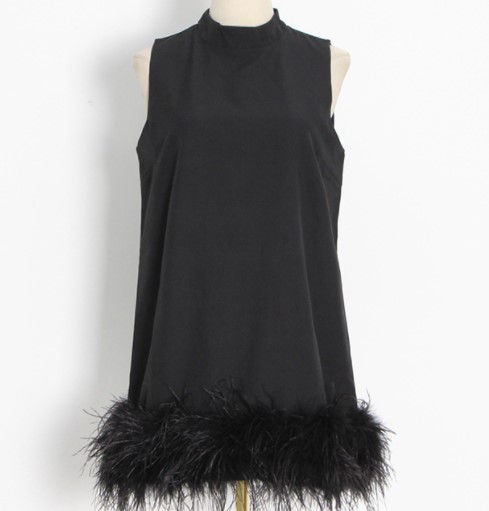 | Product Name | Senior sense ostrich feather dress summer hood neck sleeveless feather hem dress |