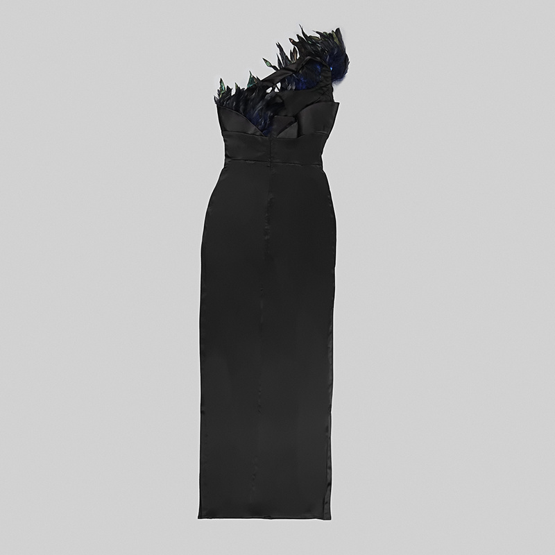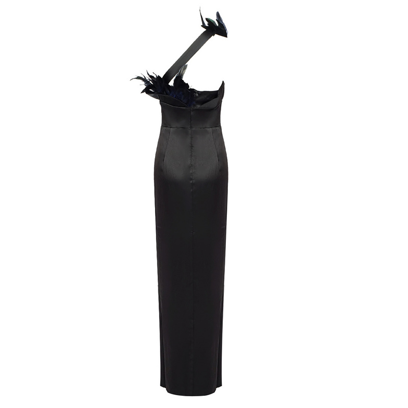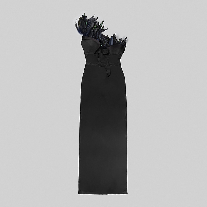 A7377 High End Newest Classic Black Long Feather Sexy Side Cut Long Evening Dresses