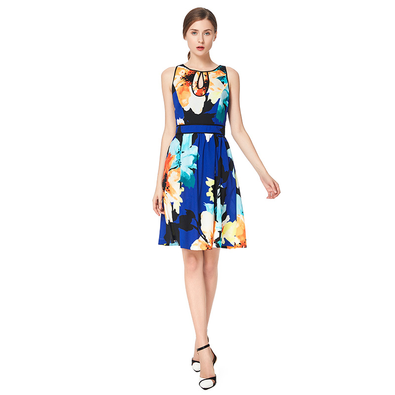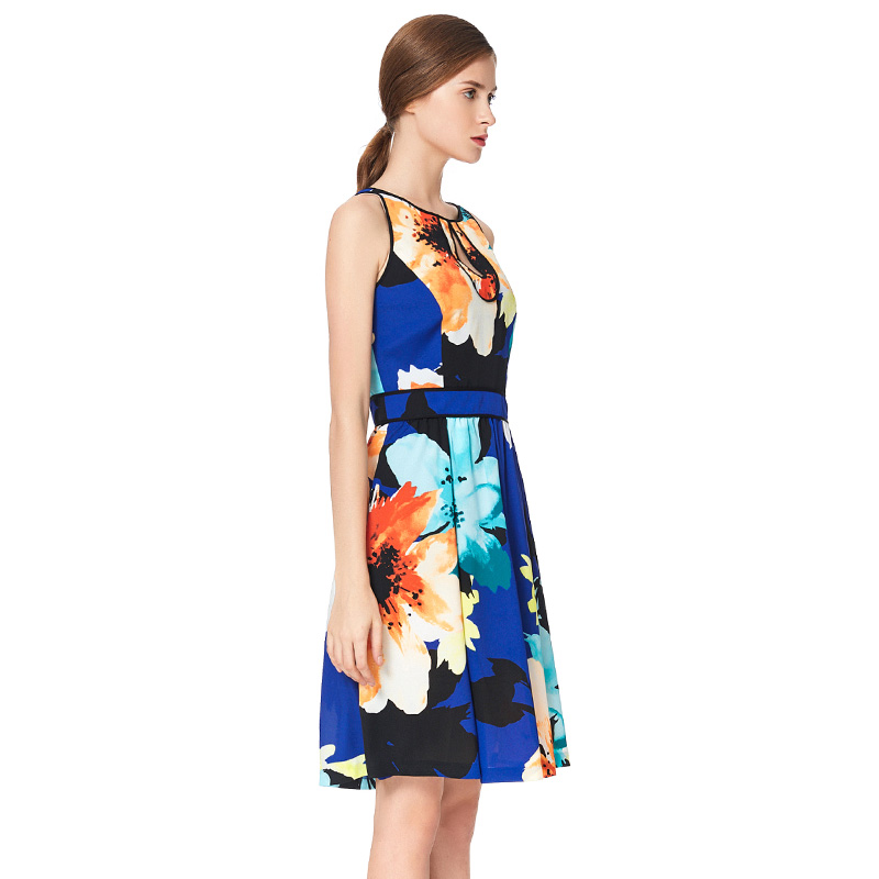*Design:Floral Print Crepe, Sleeveless,O-Neck, CF Hole With Facing And Bindling Bringing Lightspot,Neck /Armhole /Hole Facing /Waistband All Binding,Waistband And Front /Back Princess Seams For Slim Waistline,Ruched Skirt,Side Pockets,CB Invisable Zipper,Breathable Lining On Bodice,Blind Hem,Retro Classic Cut,Exquisite Workmanship,Slim Bodice A-Line Skirt,Loose Fit,Knee Dress,Fashion & Casual,Slim & Tall,Beautiful & Tasteful,Elegant & Gentle,Fresh & Cool