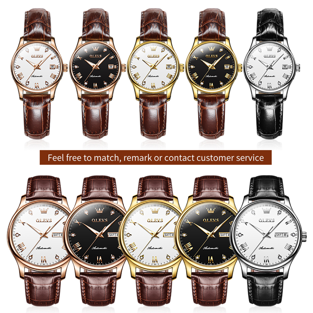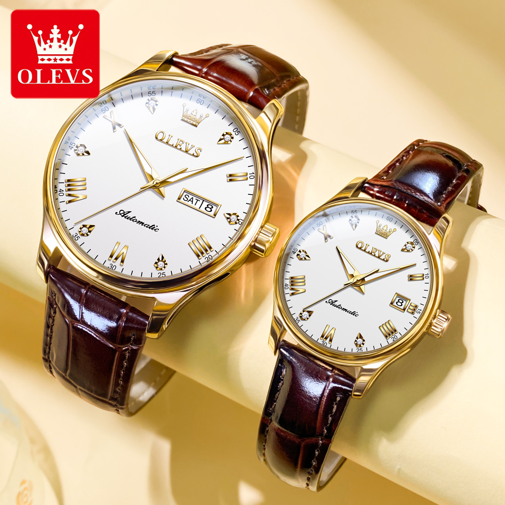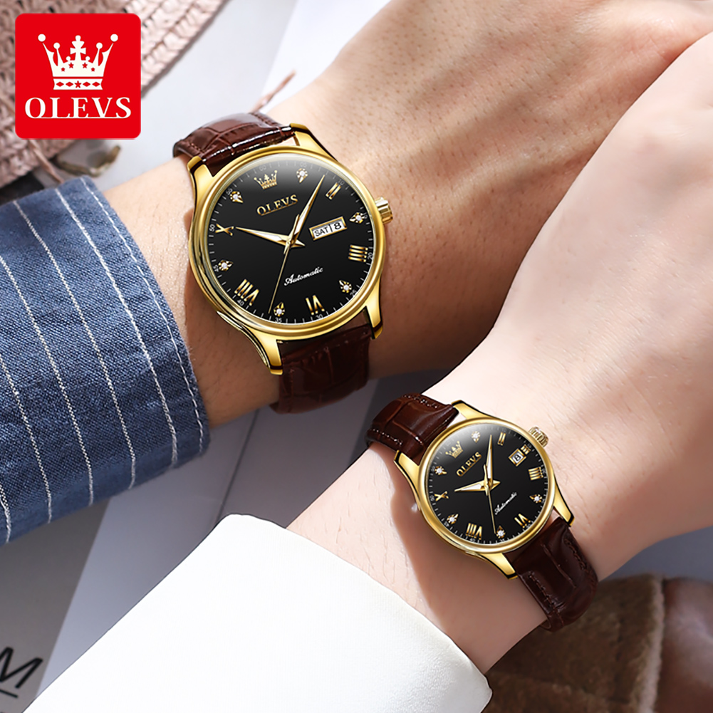 OLEVS 9932 Man women Dress Watch Top Luxury Brand couple Mechanical Watch Men Wrist Domed Crystal Dress Watch