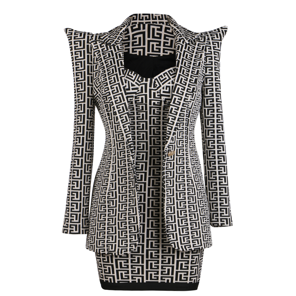 2023 Wholesale Ladies Fashion New Tip Flower Flower Blocking Suit+Wrapped Boy Skirt Two -piece Set