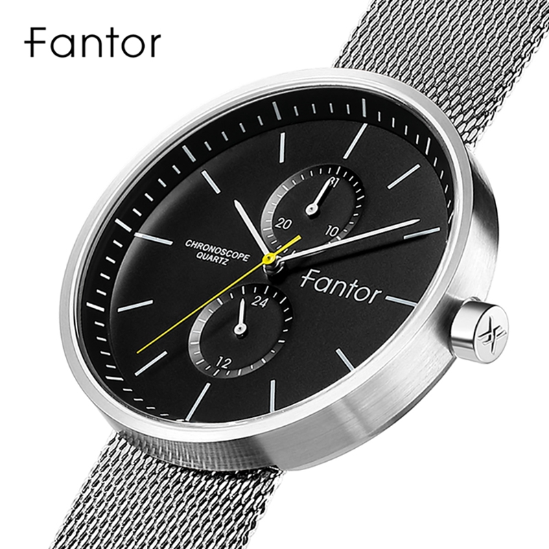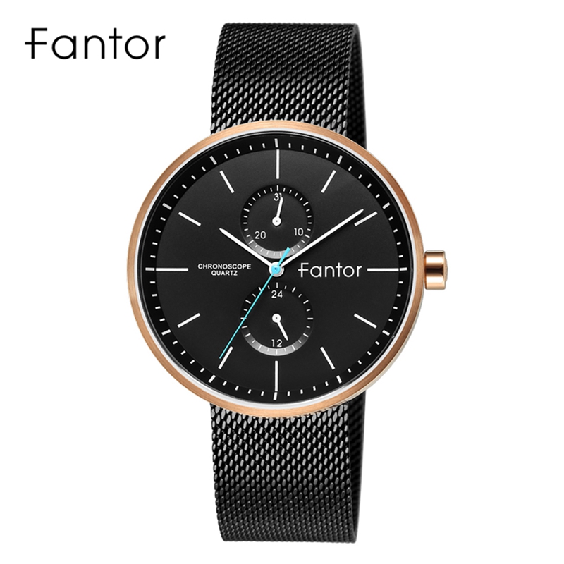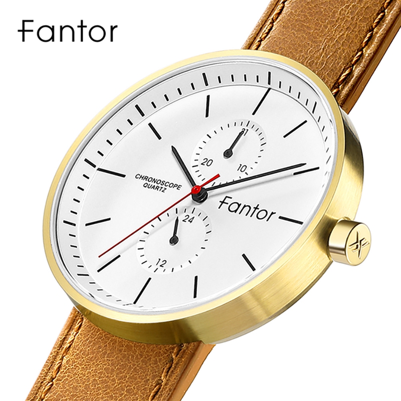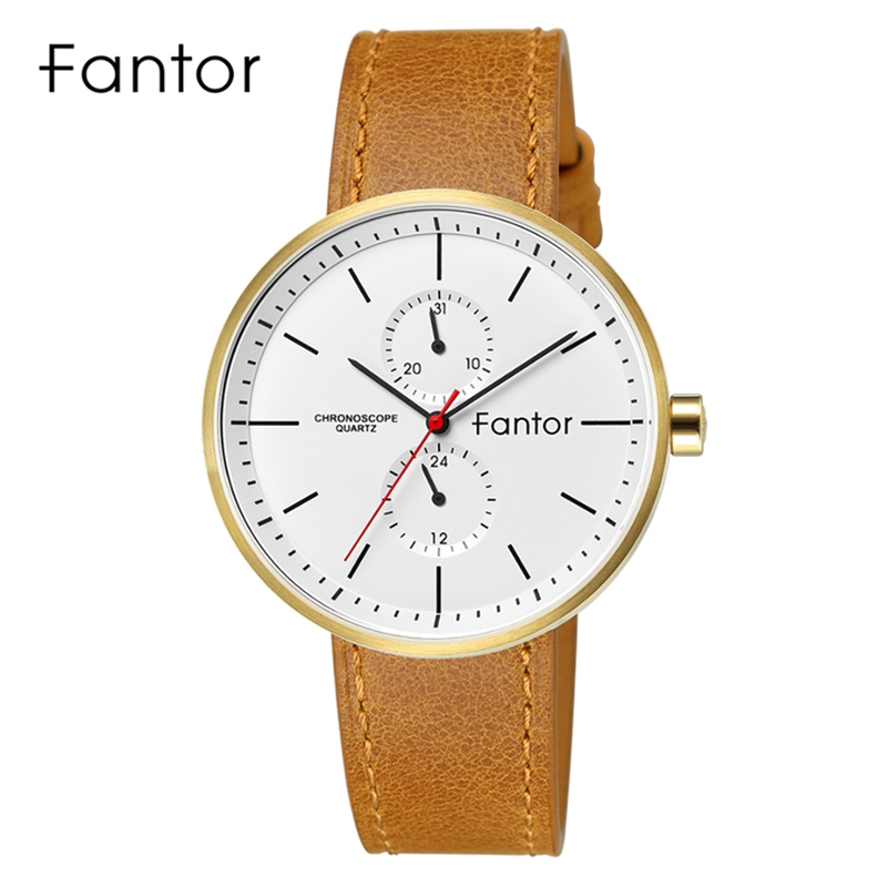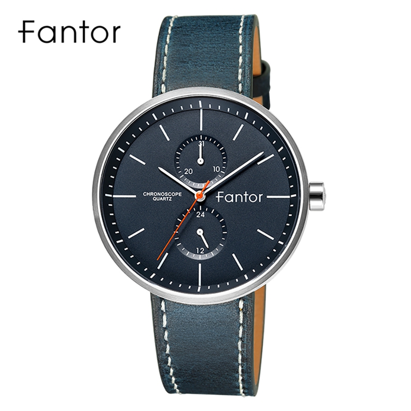 Fantor Brand Classic Men Luxury Chronograph Blue Leather Relogio Masculino Quartz Watch for Men Wrist WF1022G
