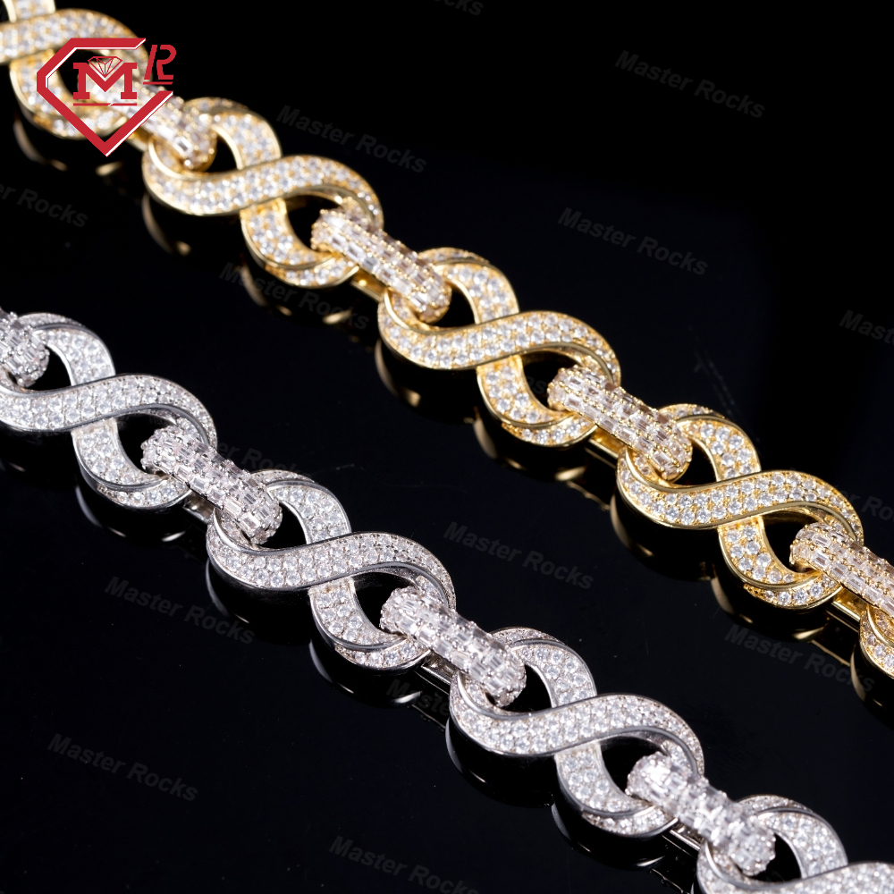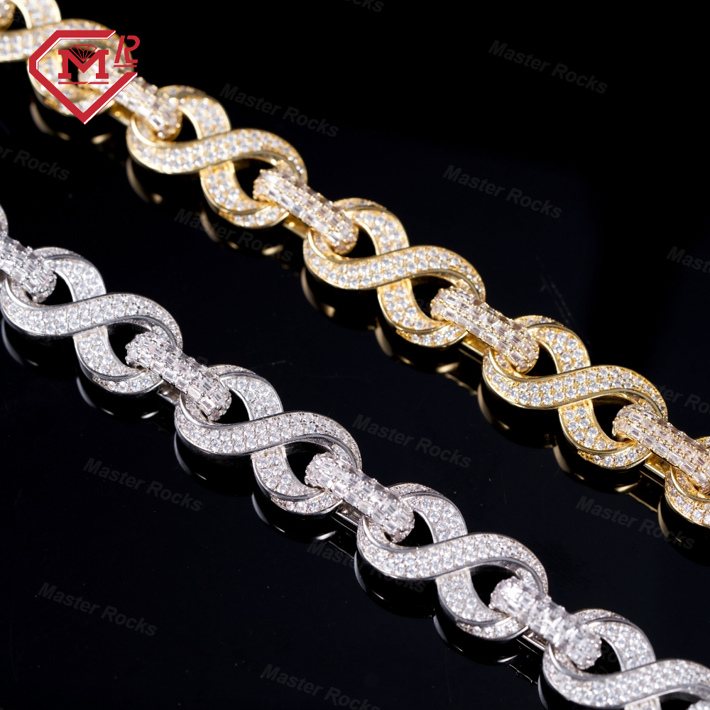 Custom 12mm 925 Sterling Silver Jewelry Men Chain Hip Hop Vvs Moissanite Infinity Cuban Link Necklace
