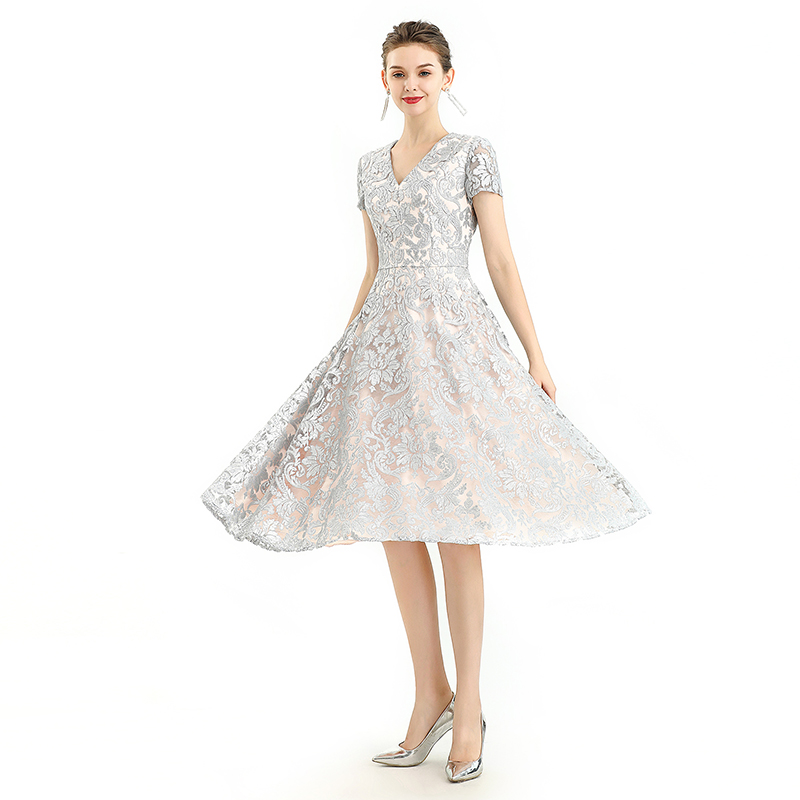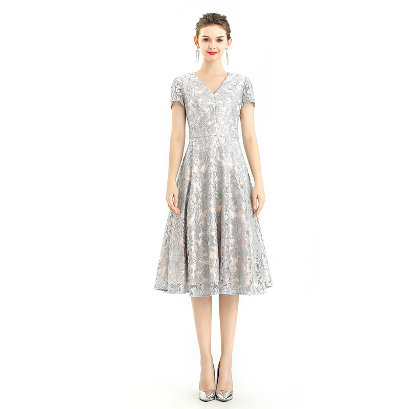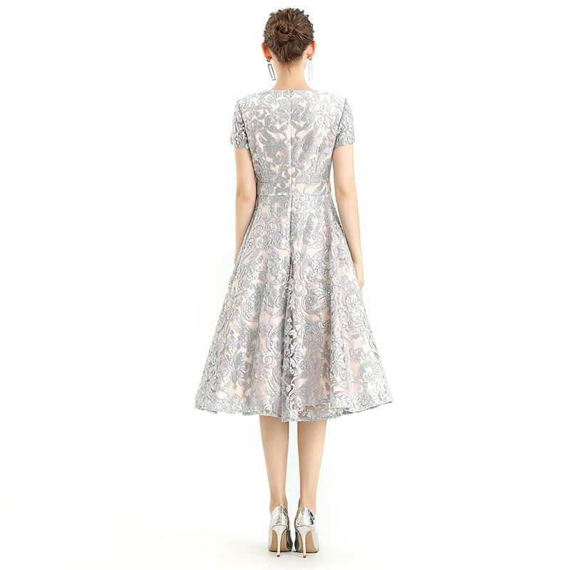 *Design: Solid Embroidered Mesh With Ramage And Sequins,Short Sleeve,Cap Sleeve,V-Neck Sexy,Ball Gown Flare Skirt Chieved Gliding Feeling,Front Princess Seams And Back Waist Darts And Waistband For Slim Waist,Side Pockets,CB Invisable Zipper,With Breathable And Stretchy Lining,Loose Fit,Midi Dress,Exquisite Workmanship,Retro Classic Cut, Fashion And Casual,Slim And Tall,Gliding And Energetic,Sexy And Attractive,Sweet And Younger,Elegant And Tasteful