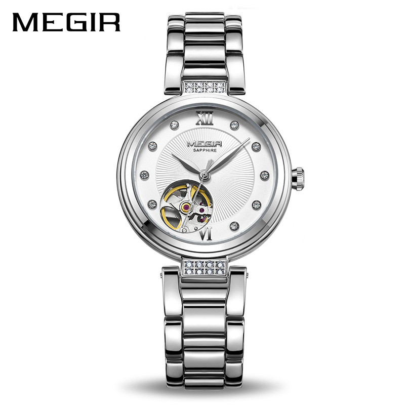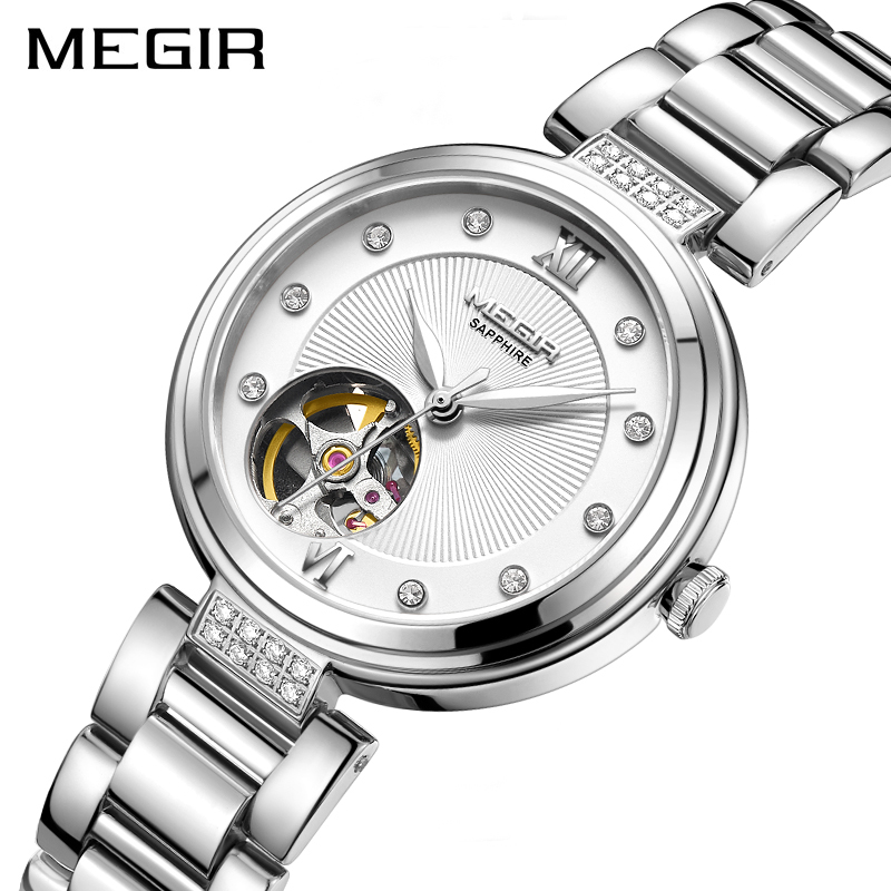 Luxury MEGIR Mechanical Women Watches Fashion Diamond Automatic Wrist Watch Women Ladies Hour Relogio Femenino Bayan Kol Saati