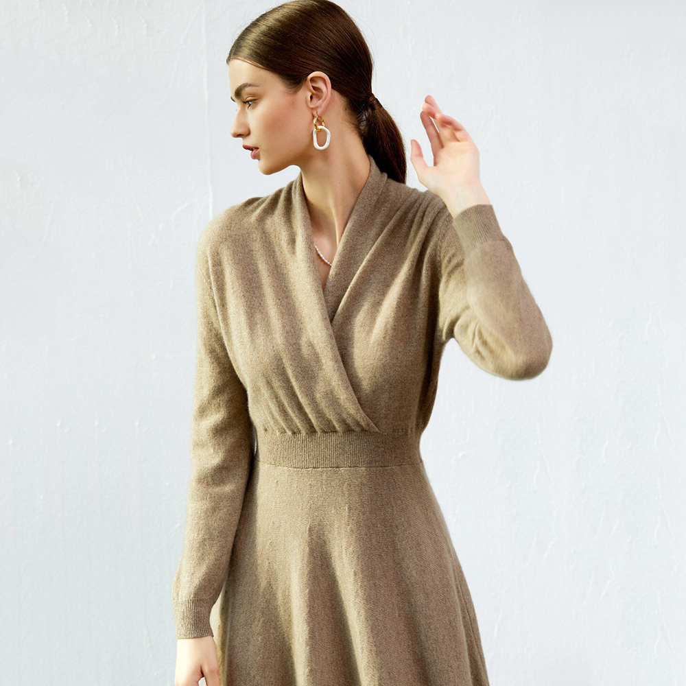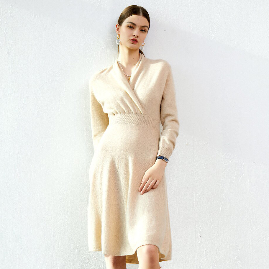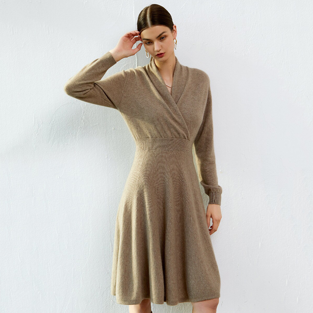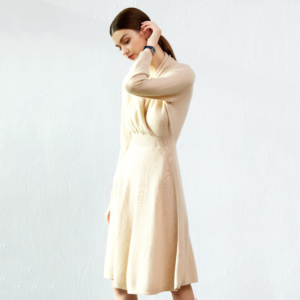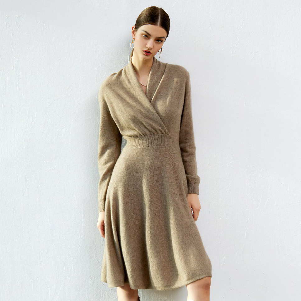 Product Name | Wholesale Winter Long Sleeve Knit Dress French Style Custom Fall Elegant Casual Long Autumn Women 100% Cashmere Sweater Dresses |