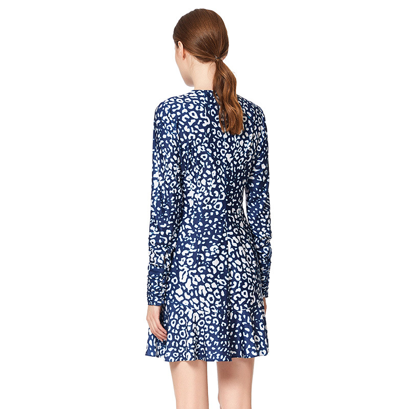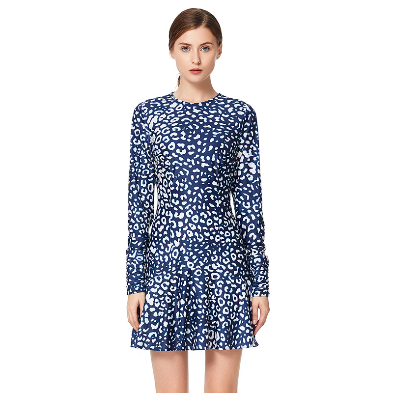 Leopard Print,O-Neck,Ruffle Hem,Front/Back Waist Darts