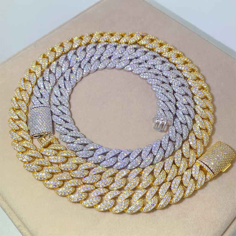 Product Name | 12mm Pass Diamond Tester Shining 925 sterling silver Iced Out VVS1 Moissanite Chocker Cuban Link Chain Necklace |