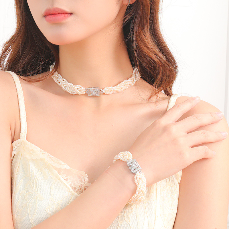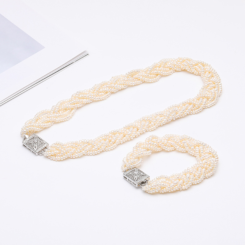 name: | 2.5-3MM Real Pearl Jewelry Lady Fashion Multi Layer Woven Natural Freshwater Charm Bracelet and Necklace for Women |