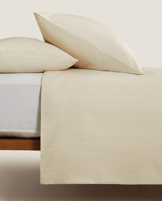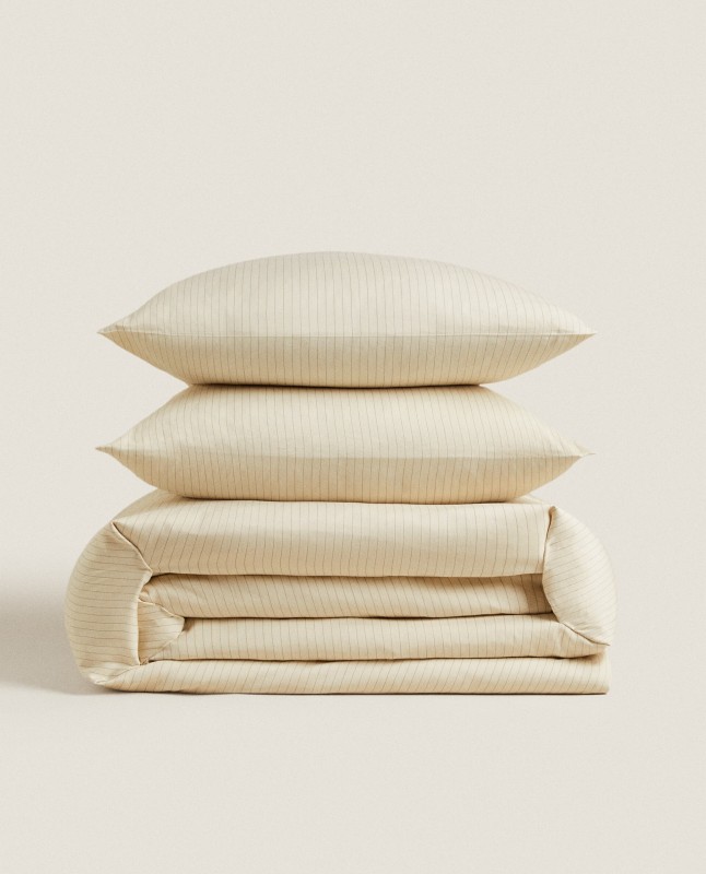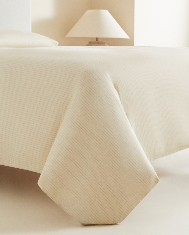 Duvet cover in 300-thread-count washed sateen with a vertical dyed thread stripe design. Limited Edition.