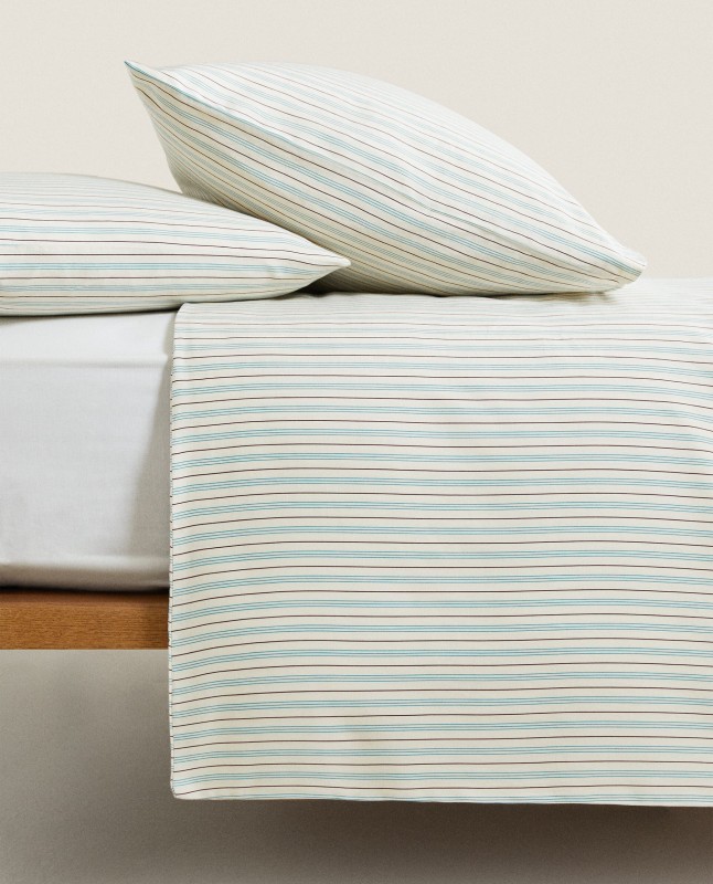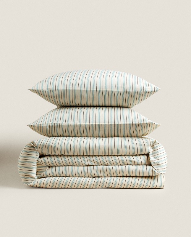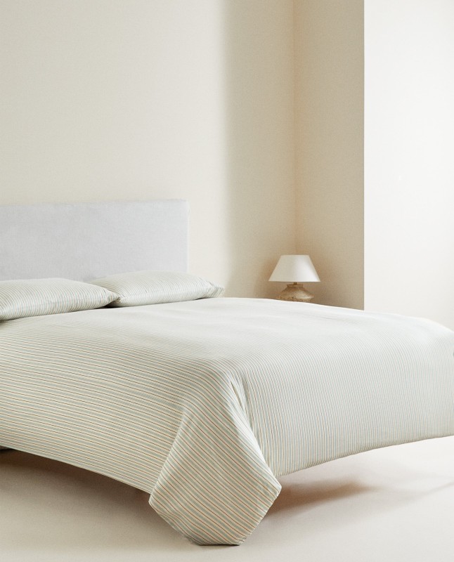 Duvet cover in 300-thread-count washed sateen with a vertical dyed thread stripe design. Limited Edition.
