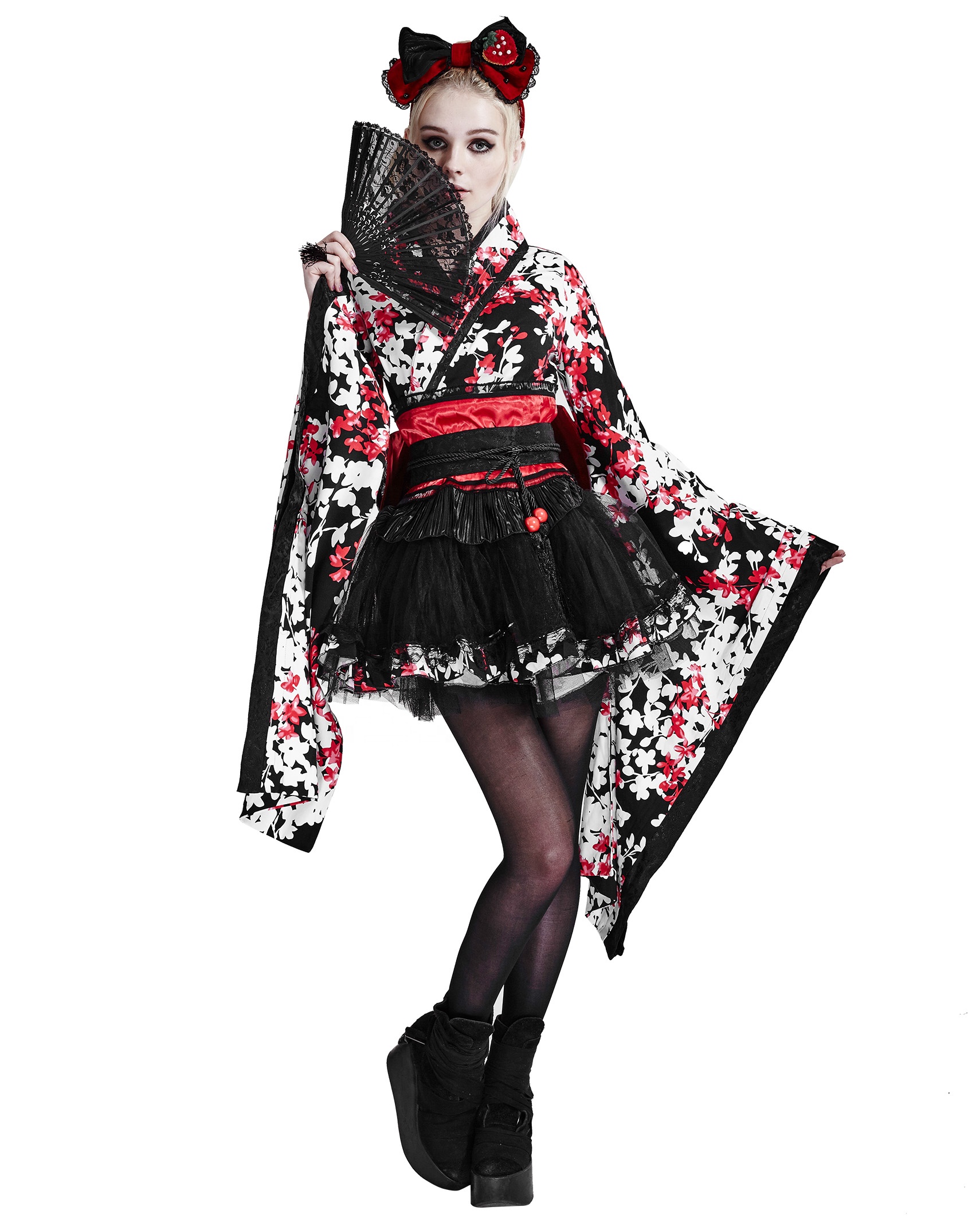 PUNK RAVE Lolita Cherry Blossom Printing Dresses LQ-001 Cosplay Sexy Short Kimono Dresses With Big Belt Women Dress