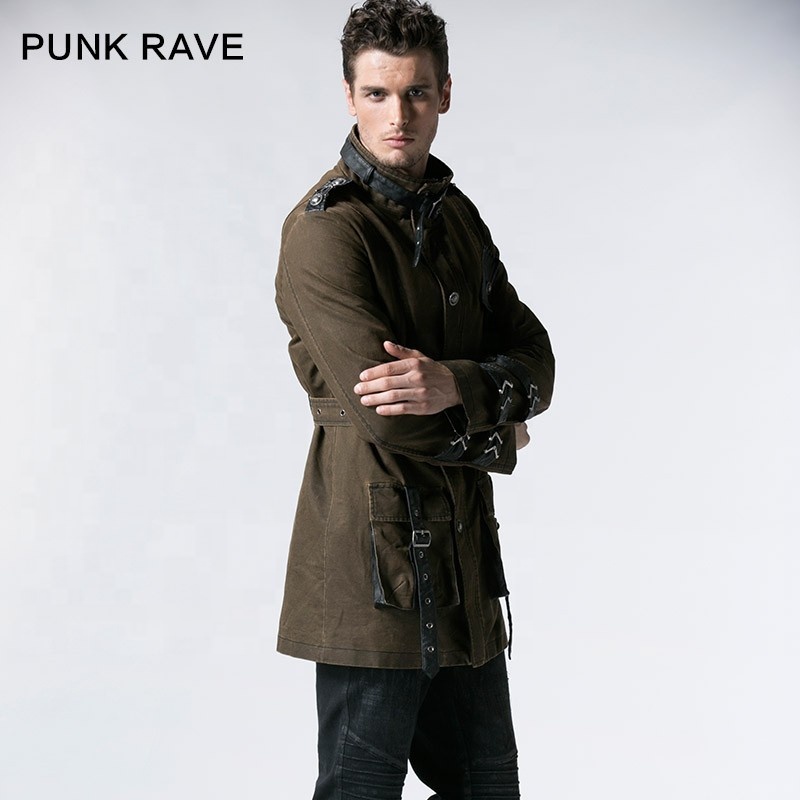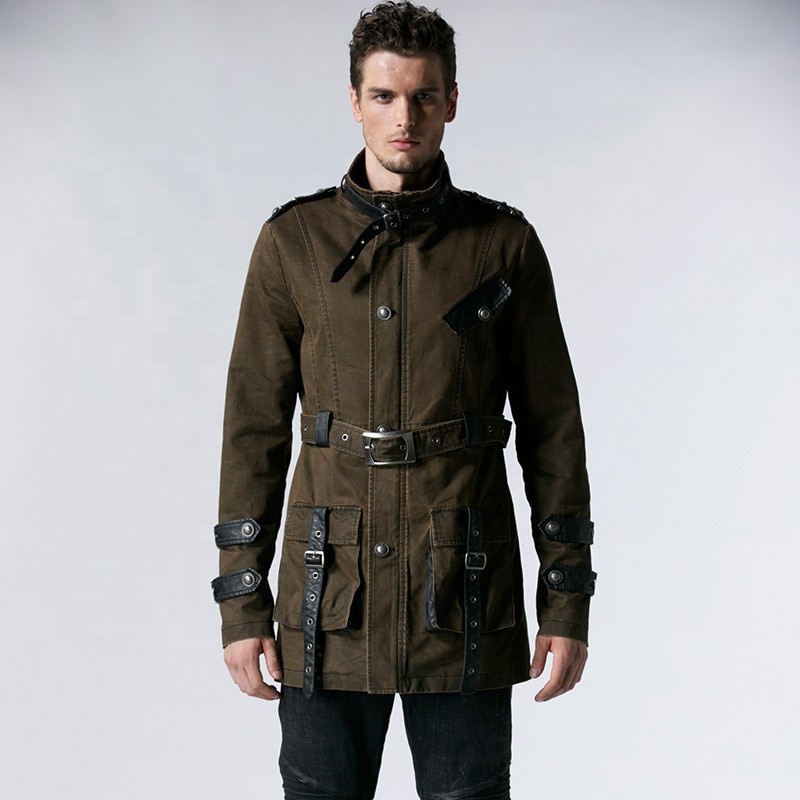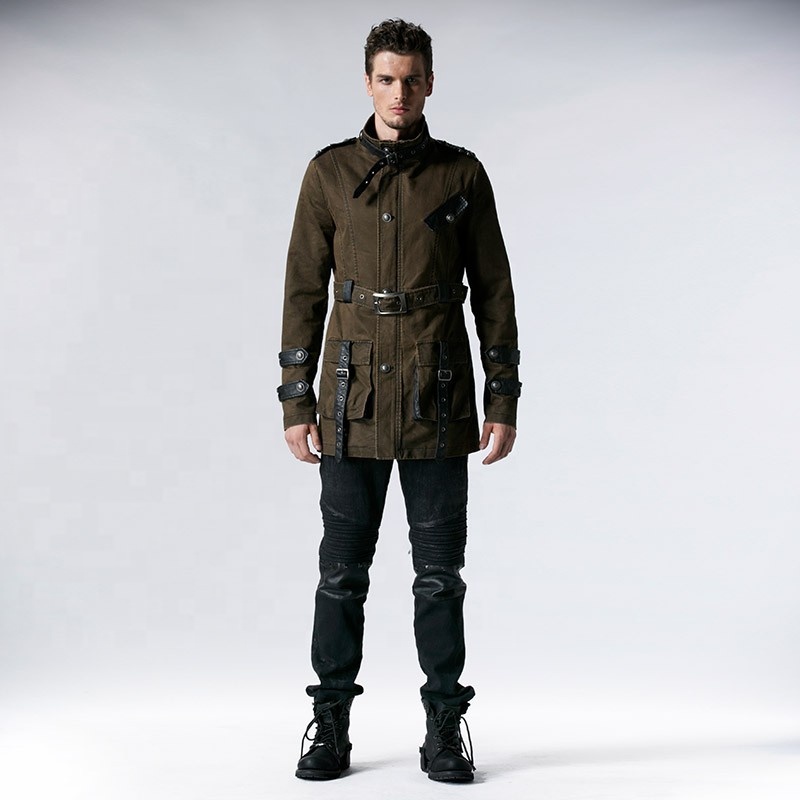 Y-532 Coffee Fashion Gothic Men Long Winter Long Coat