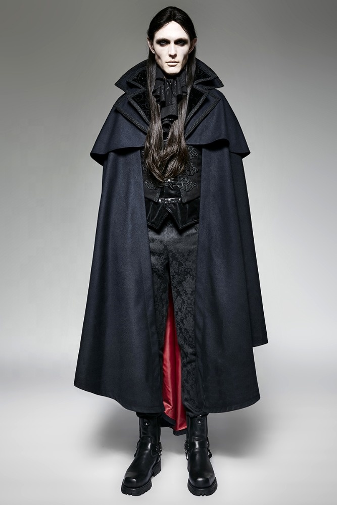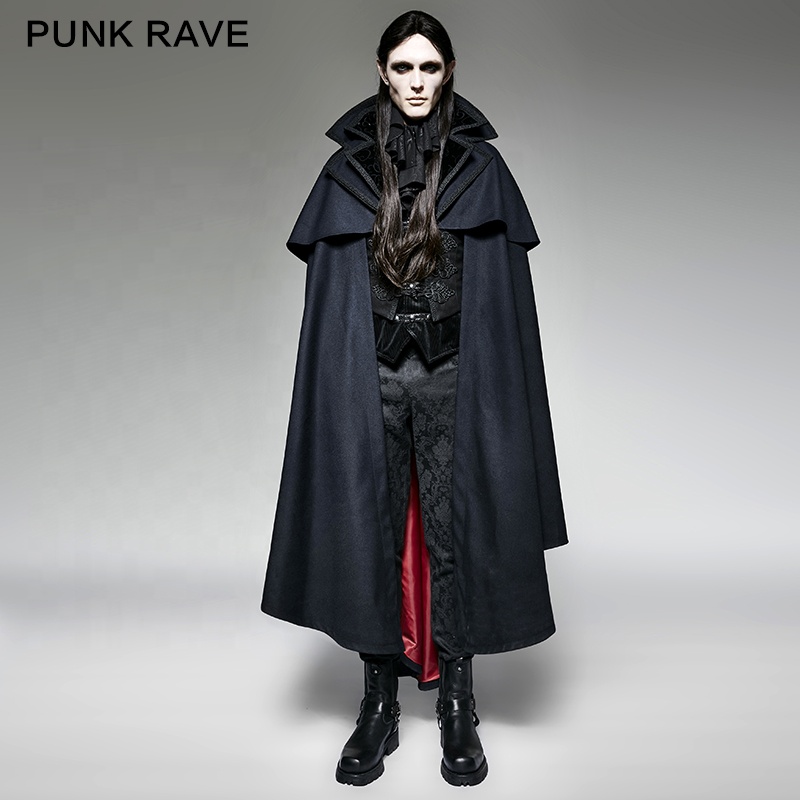PUN RAVE Y-709 Gothic Vampire Count Woven Mens Blue Cape Poncho Coat Trench Coat For Men