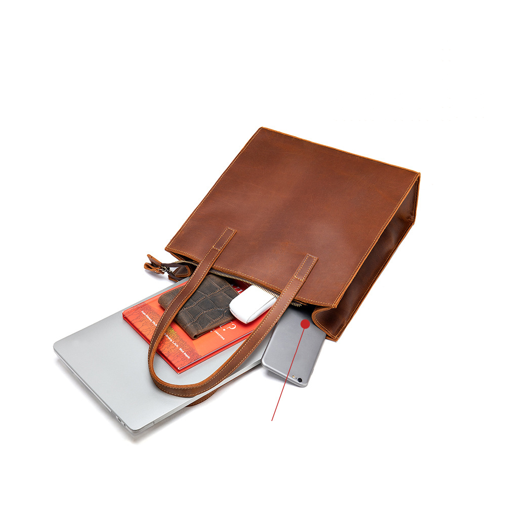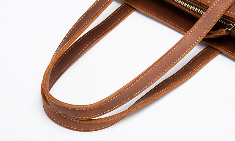 Crazy horse leather handle, provides strong support for the whole bag, delicate leather, easy to take care of.